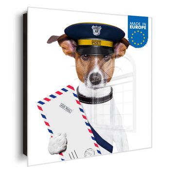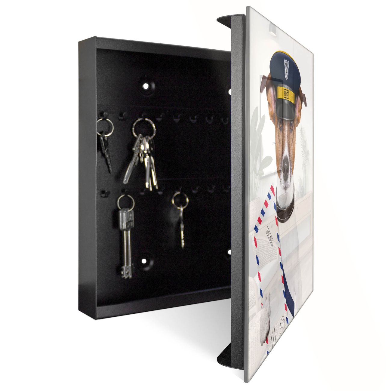 Schlüsselkasten Glas Motiv Postbote Jack Russel