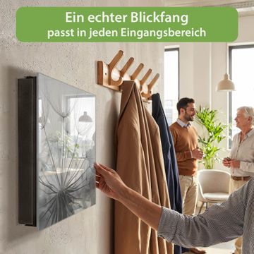 Bringe Ordnung und Eleganz in deinen Eingangsbereich mit dem banjado Schlüsselkasten Motiv Motiv Ready For Takeoff. Die moderne Schlüsselbox kombiniert funktionales Design mit hochwertiger Verarbeitung und wird so zu einem echten Hingucker in Flur, Büro oder Ferienwohnung. ✅ Stilvolle Schlüsselaufbewahrung mit Glasfront im Motiv Motiv Ready For Takeoff Der Design-Schlüsselkasten Motiv Motiv Ready For Takeoff bietet Platz für bis zu 50 Schlüssel, die auf 5 stabilen Reihen mit je 10 Haken übersichtlich verstaut werden. Mit seinen kompakten Maßen von 30 x 30 x 5 cm passt die Schlüsselbox perfekt auch in kleinere Räume. Der schwarz lackierte Stahlkorpus mit rechts angeschlagenem Türscharnier harmoniert mit der Glasfront und fügt sich nahtlos in jedes Wohnambiente ein. Ob als Schlüsselorganizer für Zuhause oder als praktische Lösung für Büros, Praxen und Gewerbe, der banjado Schlüsselkasten sorgt für Ordnung und Übersicht. Dank der magnetischen, mit Kreidestiften beschreibbaren Glasfront kannst du Notizen anheften oder Termine direkt auf der Oberfläche festhalten. Die Schlüsselbox Motiv Motiv Ready For Takeoff zur Wandmontage wird inklusive Befestigungsmaterial geliefert und ist schnell angebracht. So hast du deine Schlüssel jederzeit griffbereit und zugleich stilvoll verstaut. Mit diesem banjado Schlüsselkasten Motiv Motiv Ready For Takeoff kombinierst du praktische Aufbewahrung mit stilvollem Wohndesign. Ob privat oder geschäftlich, die Schlüsselbox sorgt für mehr Ordnung, Übersicht und ein wohnliches Ambiente.Vorteile im Überblick