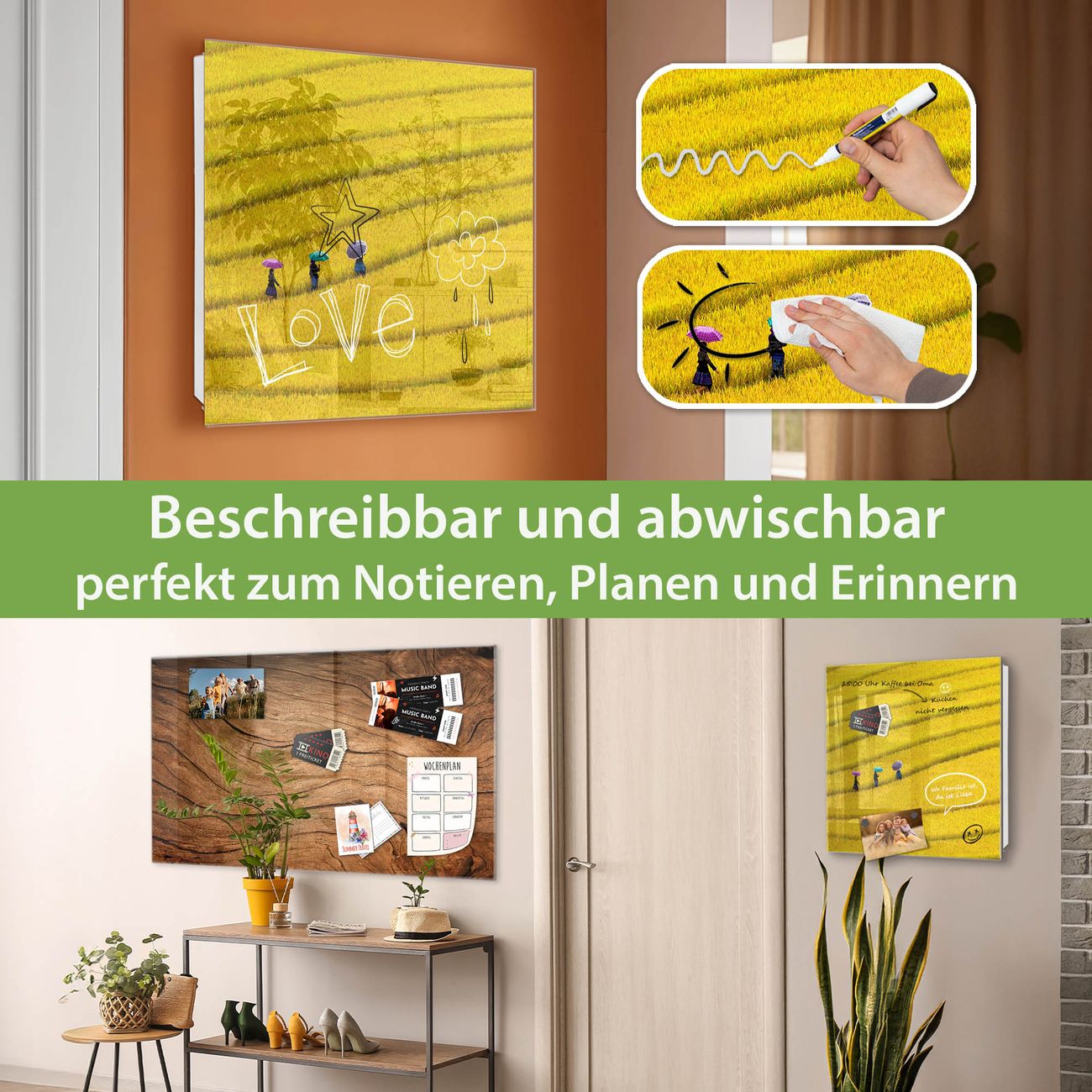 ✅ Magnetisch und mit Kreidestift beschreibbar, gehärtetes Glas, rechts angeschlagene TürOrdnung und Design in einem