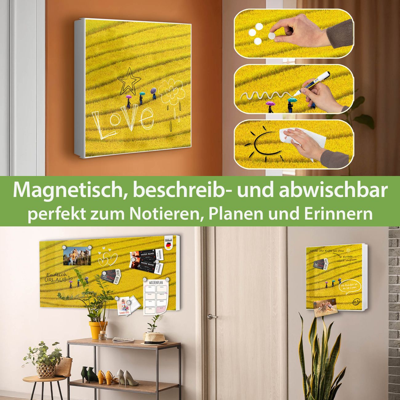 Bringe Ordnung und Eleganz in deinen Eingangsbereich mit dem banjado Schlüsselkasten Motiv Motiv Reisfeld Vietnam . Die moderne Schlüsselbox kombiniert funktionales Design mit hochwertiger Verarbeitung und wird so zu einem echten Hingucker in Flur, Büro oder Ferienwohnung. ✅ Stilvolle Schlüsselaufbewahrung mit Motiv Motiv Reisfeld Vietnam Der Design-Schlüsselkasten Motiv Motiv Reisfeld Vietnam bietet Platz für bis zu 32 Schlüssel, die auf 4 stabilen Reihen mit je 8 Haken übersichtlich verstaut werden. Mit seinen kompakten Maßen von 30 x 30 x 5 cm passt die Schlüsselbox perfekt auch in kleinere Räume. Der weiß lackierte Stahlkorpus mit links angeschlagenem Türscharnier harmoniert mit gedruckten Folie auf der Front und fügt sich nahtlos in jedes Wohnambiente ein. Ob als Schlüsselorganizer für Zuhause oder als praktische Lösung für Büros, Praxen und Gewerbe, der banjado Schlüsselkasten sorgt für Ordnung und Übersicht. Dank der magnetischen, mit Kreidestiften beschreibbaren Folie auf der Front kannst du Notizen anheften oder Termine direkt auf der Oberfläche festhalten. Die Schlüsselbox Motiv Motiv Reisfeld Vietnam zur Wandmontage wird inklusive Befestigungsmaterial geliefert und ist schnell angebracht. So hast du deine Schlüssel jederzeit griffbereit und zugleich stilvoll verstaut. Mit diesem banjado Schlüsselkasten Motiv Motiv Reisfeld Vietnam kombinierst du praktische Aufbewahrung mit stilvollem Wohndesign. Ob privat oder geschäftlich, die Schlüsselbox sorgt für mehr Ordnung, Übersicht und ein wohnliches Ambiente.Vorteile im Überblick