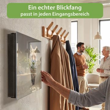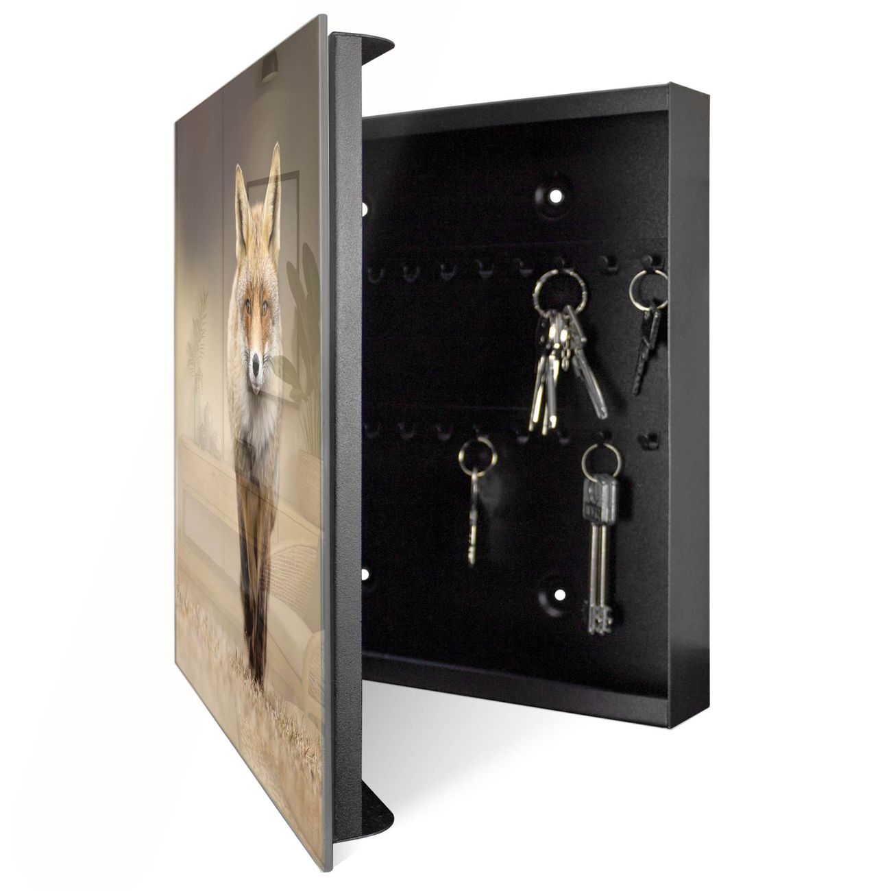 Bringe Ordnung und Eleganz in deinen Eingangsbereich mit dem banjado Schlüsselkasten Motiv Motiv Rosalie. Die moderne Schlüsselbox kombiniert funktionales Design mit hochwertiger Verarbeitung und wird so zu einem echten Hingucker in Flur, Büro oder Ferienwohnung. ✅ Stilvolle Schlüsselaufbewahrung mit Glasfront im Motiv Motiv Rosalie Der Design-Schlüsselkasten Motiv Motiv Rosalie bietet Platz für bis zu 50 Schlüssel, die auf 5 stabilen Reihen mit je 10 Haken übersichtlich verstaut werden. Mit seinen kompakten Maßen von 30 x 30 x 5 cm passt die Schlüsselbox perfekt auch in kleinere Räume. Der schwarz lackierte Stahlkorpus mit rechts angeschlagenem Türscharnier harmoniert mit der Glasfront und fügt sich nahtlos in jedes Wohnambiente ein. Ob als Schlüsselorganizer für Zuhause oder als praktische Lösung für Büros, Praxen und Gewerbe, der banjado Schlüsselkasten sorgt für Ordnung und Übersicht. Dank der magnetischen, mit Kreidestiften beschreibbaren Glasfront kannst du Notizen anheften oder Termine direkt auf der Oberfläche festhalten. Die Schlüsselbox Motiv Motiv Rosalie zur Wandmontage wird inklusive Befestigungsmaterial geliefert und ist schnell angebracht. So hast du deine Schlüssel jederzeit griffbereit und zugleich stilvoll verstaut. Mit diesem banjado Schlüsselkasten Motiv Motiv Rosalie kombinierst du praktische Aufbewahrung mit stilvollem Wohndesign. Ob privat oder geschäftlich, die Schlüsselbox sorgt für mehr Ordnung, Übersicht und ein wohnliches Ambiente.Vorteile im Überblick