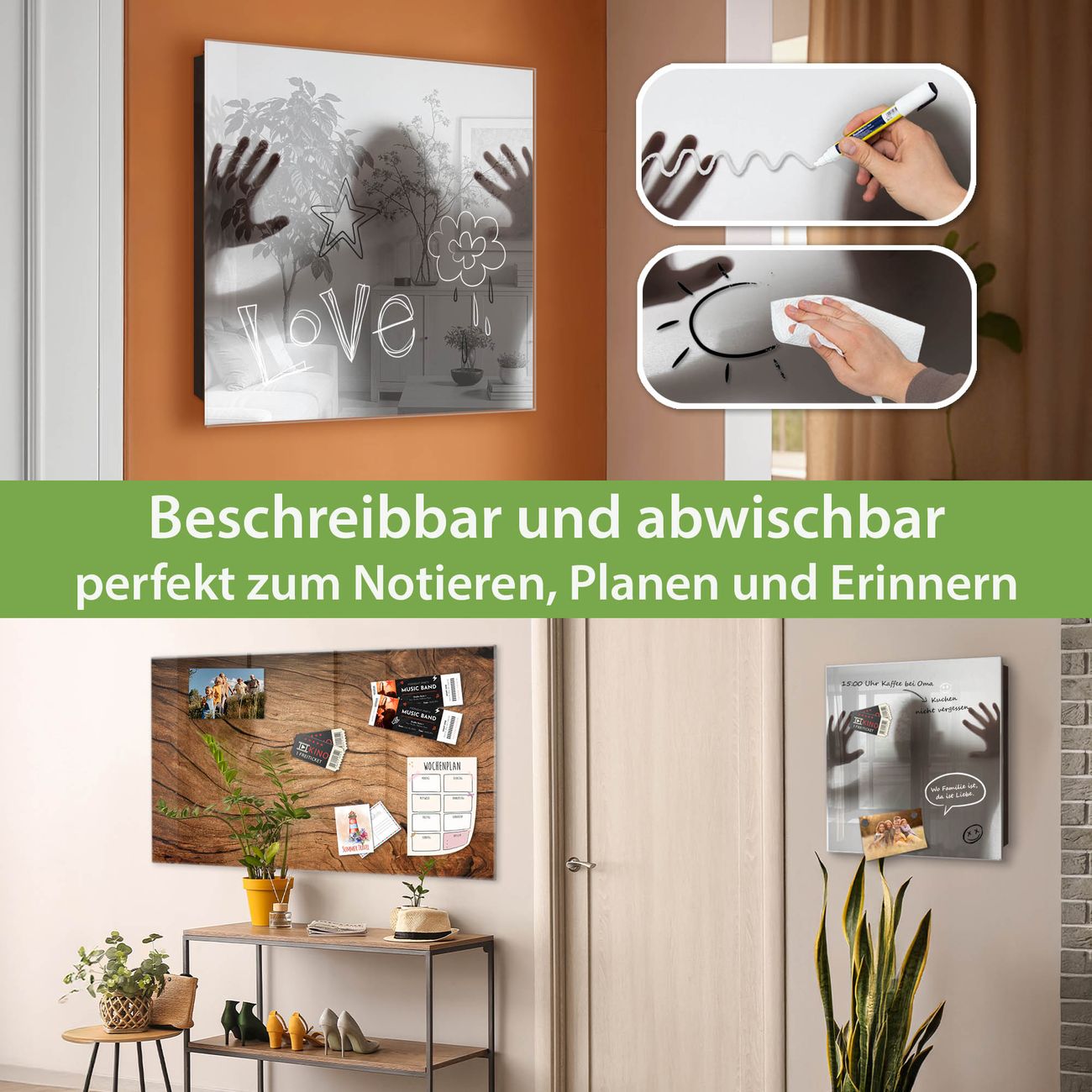✅ Magnetisch und mit Kreidestift beschreibbar, gehärtetes Glas, links angeschlagene TürOrdnung und Design in einem