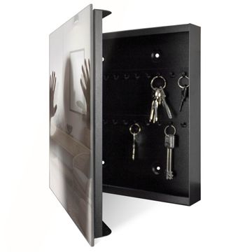 Bringe Ordnung und Eleganz in deinen Eingangsbereich mit dem banjado Schlüsselkasten Motiv Motiv Schattenspiel. Die moderne Schlüsselbox kombiniert funktionales Design mit hochwertiger Verarbeitung und wird so zu einem echten Hingucker in Flur, Büro oder Ferienwohnung. ✅ Stilvolle Schlüsselaufbewahrung mit Glasfront im Motiv Motiv Schattenspiel Der Design-Schlüsselkasten Motiv Motiv Schattenspiel bietet Platz für bis zu 50 Schlüssel, die auf 5 stabilen Reihen mit je 10 Haken übersichtlich verstaut werden. Mit seinen kompakten Maßen von 30 x 30 x 5 cm passt die Schlüsselbox perfekt auch in kleinere Räume. Der schwarz lackierte Stahlkorpus mit rechts angeschlagenem Türscharnier harmoniert mit der Glasfront und fügt sich nahtlos in jedes Wohnambiente ein. Ob als Schlüsselorganizer für Zuhause oder als praktische Lösung für Büros, Praxen und Gewerbe, der banjado Schlüsselkasten sorgt für Ordnung und Übersicht. Dank der magnetischen, mit Kreidestiften beschreibbaren Glasfront kannst du Notizen anheften oder Termine direkt auf der Oberfläche festhalten. Die Schlüsselbox Motiv Motiv Schattenspiel zur Wandmontage wird inklusive Befestigungsmaterial geliefert und ist schnell angebracht. So hast du deine Schlüssel jederzeit griffbereit und zugleich stilvoll verstaut. Mit diesem banjado Schlüsselkasten Motiv Motiv Schattenspiel kombinierst du praktische Aufbewahrung mit stilvollem Wohndesign. Ob privat oder geschäftlich, die Schlüsselbox sorgt für mehr Ordnung, Übersicht und ein wohnliches Ambiente.Vorteile im Überblick