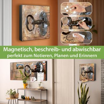 Bringe Ordnung und Eleganz in deinen Eingangsbereich mit dem banjado Schlüsselkasten Motiv Motiv Schlüssel. Die moderne Schlüsselbox kombiniert funktionales Design mit hochwertiger Verarbeitung und wird so zu einem echten Hingucker in Flur, Büro oder Ferienwohnung. ✅ Stilvolle Schlüsselaufbewahrung mit Motiv Motiv Schlüssel Der Design-Schlüsselkasten Motiv Motiv Schlüssel bietet Platz für bis zu 32 Schlüssel, die auf 4 stabilen Reihen mit je 8 Haken übersichtlich verstaut werden. Mit seinen kompakten Maßen von 30 x 30 x 5 cm passt die Schlüsselbox perfekt auch in kleinere Räume. Der schwarz lackierte Stahlkorpus mit rechts angeschlagenem Türscharnier harmoniert mit gedruckten Folie auf der Front und fügt sich nahtlos in jedes Wohnambiente ein. Ob als Schlüsselorganizer für Zuhause oder als praktische Lösung für Büros, Praxen und Gewerbe, der banjado Schlüsselkasten sorgt für Ordnung und Übersicht. Dank der magnetischen, mit Kreidestiften beschreibbaren Folie auf der Front kannst du Notizen anheften oder Termine direkt auf der Oberfläche festhalten. Die Schlüsselbox Motiv Motiv Schlüssel zur Wandmontage wird inklusive Befestigungsmaterial geliefert und ist schnell angebracht. So hast du deine Schlüssel jederzeit griffbereit und zugleich stilvoll verstaut. Mit diesem banjado Schlüsselkasten Motiv Motiv Schlüssel kombinierst du praktische Aufbewahrung mit stilvollem Wohndesign. Ob privat oder geschäftlich, die Schlüsselbox sorgt für mehr Ordnung, Übersicht und ein wohnliches Ambiente.Vorteile im Überblick