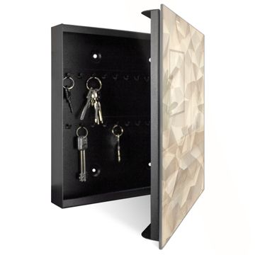 Bringe Ordnung und Eleganz in deinen Eingangsbereich mit dem banjado Schlüsselkasten Motiv Motiv Steinwand 2. Die moderne Schlüsselbox kombiniert funktionales Design mit hochwertiger Verarbeitung und wird so zu einem echten Hingucker in Flur, Büro oder Ferienwohnung. ✅ Stilvolle Schlüsselaufbewahrung mit Glasfront im Motiv Motiv Steinwand 2 Der Design-Schlüsselkasten Motiv Motiv Steinwand 2 bietet Platz für bis zu 50 Schlüssel, die auf 5 stabilen Reihen mit je 10 Haken übersichtlich verstaut werden. Mit seinen kompakten Maßen von 30 x 30 x 5 cm passt die Schlüsselbox perfekt auch in kleinere Räume. Der schwarz lackierte Stahlkorpus mit rechts angeschlagenem Türscharnier harmoniert mit der Glasfront und fügt sich nahtlos in jedes Wohnambiente ein. Ob als Schlüsselorganizer für Zuhause oder als praktische Lösung für Büros, Praxen und Gewerbe, der banjado Schlüsselkasten sorgt für Ordnung und Übersicht. Dank der magnetischen, mit Kreidestiften beschreibbaren Glasfront kannst du Notizen anheften oder Termine direkt auf der Oberfläche festhalten. Die Schlüsselbox Motiv Motiv Steinwand 2 zur Wandmontage wird inklusive Befestigungsmaterial geliefert und ist schnell angebracht. So hast du deine Schlüssel jederzeit griffbereit und zugleich stilvoll verstaut. Mit diesem banjado Schlüsselkasten Motiv Motiv Steinwand 2 kombinierst du praktische Aufbewahrung mit stilvollem Wohndesign. Ob privat oder geschäftlich, die Schlüsselbox sorgt für mehr Ordnung, Übersicht und ein wohnliches Ambiente.Vorteile im Überblick