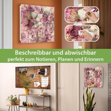 Bringe Ordnung und Eleganz in deinen Eingangsbereich mit dem banjado Schlüsselkasten Motiv Motiv Strauss Rosen. Die moderne Schlüsselbox kombiniert funktionales Design mit hochwertiger Verarbeitung und wird so zu einem echten Hingucker in Flur, Büro oder Ferienwohnung. ✅ Stilvolle Schlüsselaufbewahrung mit Glasfront im Motiv Motiv Strauss Rosen Der Design-Schlüsselkasten Motiv Motiv Strauss Rosen bietet Platz für bis zu 50 Schlüssel, die auf 5 stabilen Reihen mit je 10 Haken übersichtlich verstaut werden. Mit seinen kompakten Maßen von 30 x 30 x 5 cm passt die Schlüsselbox perfekt auch in kleinere Räume. Der weiß lackierte Stahlkorpus mit rechts angeschlagenem Türscharnier harmoniert mit der Glasfront und fügt sich nahtlos in jedes Wohnambiente ein. Ob als Schlüsselorganizer für Zuhause oder als praktische Lösung für Büros, Praxen und Gewerbe, der banjado Schlüsselkasten sorgt für Ordnung und Übersicht. Dank der magnetischen, mit Kreidestiften beschreibbaren Glasfront kannst du Notizen anheften oder Termine direkt auf der Oberfläche festhalten. Die Schlüsselbox Motiv Motiv Strauss Rosen zur Wandmontage wird inklusive Befestigungsmaterial geliefert und ist schnell angebracht. So hast du deine Schlüssel jederzeit griffbereit und zugleich stilvoll verstaut. Mit diesem banjado Schlüsselkasten Motiv Motiv Strauss Rosen kombinierst du praktische Aufbewahrung mit stilvollem Wohndesign. Ob privat oder geschäftlich, die Schlüsselbox sorgt für mehr Ordnung, Übersicht und ein wohnliches Ambiente.Vorteile im Überblick
