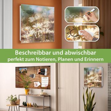 Bringe Ordnung und Eleganz in deinen Eingangsbereich mit dem banjado Schlüsselkasten Motiv Motiv Tausendschönwiese. Die moderne Schlüsselbox kombiniert funktionales Design mit hochwertiger Verarbeitung und wird so zu einem echten Hingucker in Flur, Büro oder Ferienwohnung. ✅ Stilvolle Schlüsselaufbewahrung mit Glasfront im Motiv Motiv Tausendschönwiese Der Design-Schlüsselkasten Motiv Motiv Tausendschönwiese bietet Platz für bis zu 50 Schlüssel, die auf 5 stabilen Reihen mit je 10 Haken übersichtlich verstaut werden. Mit seinen kompakten Maßen von 30 x 30 x 5 cm passt die Schlüsselbox perfekt auch in kleinere Räume. Der weiß lackierte Stahlkorpus mit rechts angeschlagenem Türscharnier harmoniert mit der Glasfront und fügt sich nahtlos in jedes Wohnambiente ein. Ob als Schlüsselorganizer für Zuhause oder als praktische Lösung für Büros, Praxen und Gewerbe, der banjado Schlüsselkasten sorgt für Ordnung und Übersicht. Dank der magnetischen, mit Kreidestiften beschreibbaren Glasfront kannst du Notizen anheften oder Termine direkt auf der Oberfläche festhalten. Die Schlüsselbox Motiv Motiv Tausendschönwiese zur Wandmontage wird inklusive Befestigungsmaterial geliefert und ist schnell angebracht. So hast du deine Schlüssel jederzeit griffbereit und zugleich stilvoll verstaut. Mit diesem banjado Schlüsselkasten Motiv Motiv Tausendschönwiese kombinierst du praktische Aufbewahrung mit stilvollem Wohndesign. Ob privat oder geschäftlich, die Schlüsselbox sorgt für mehr Ordnung, Übersicht und ein wohnliches Ambiente.Vorteile im Überblick