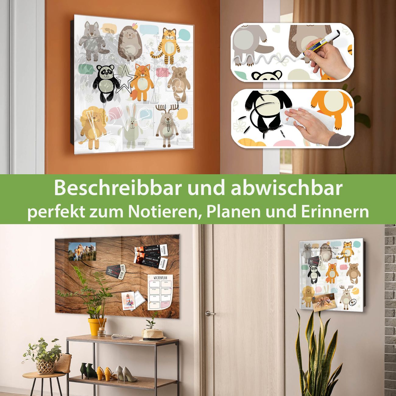 ✅ Magnetisch und mit Kreidestift beschreibbar, gehärtetes Glas, links angeschlagene TürOrdnung und Design in einem