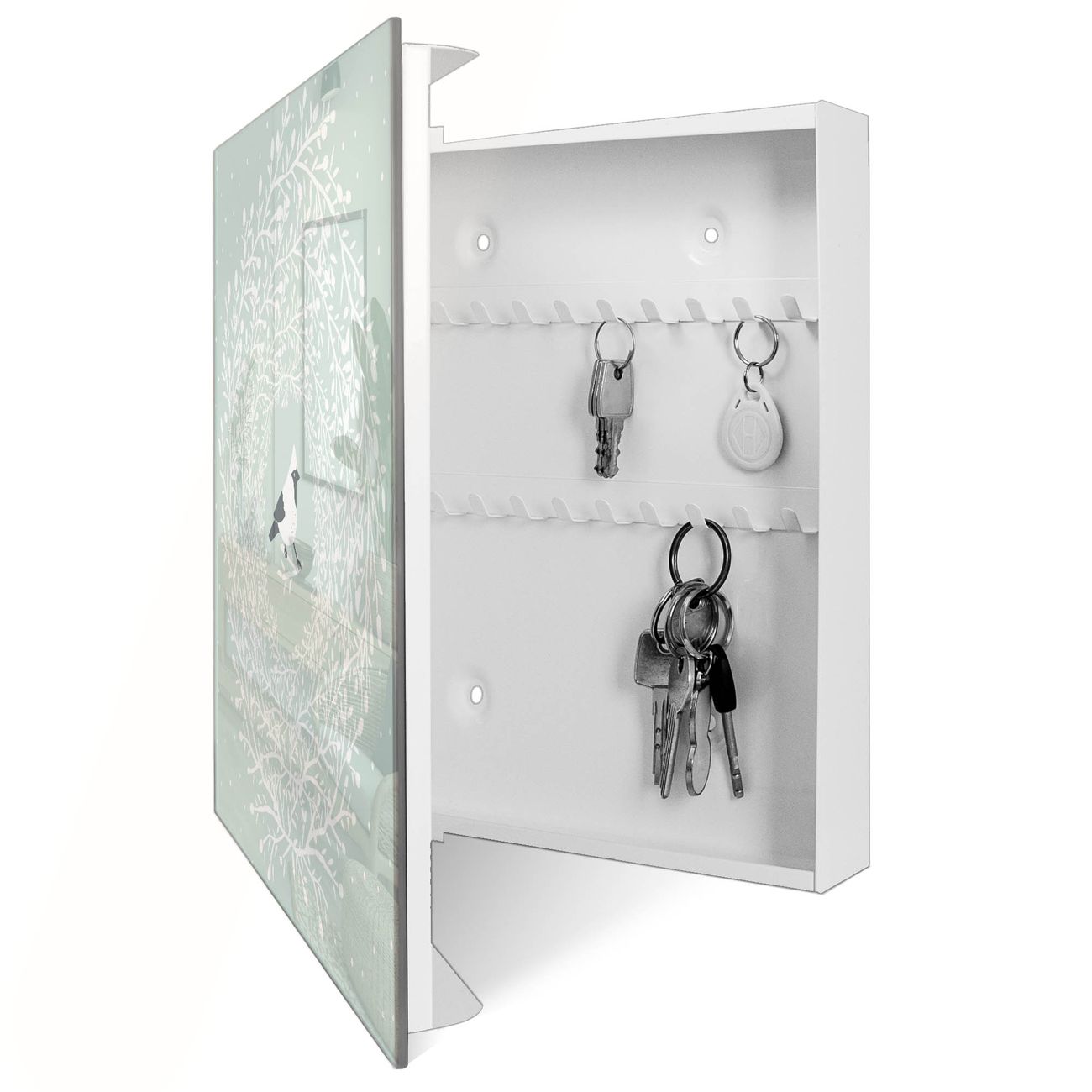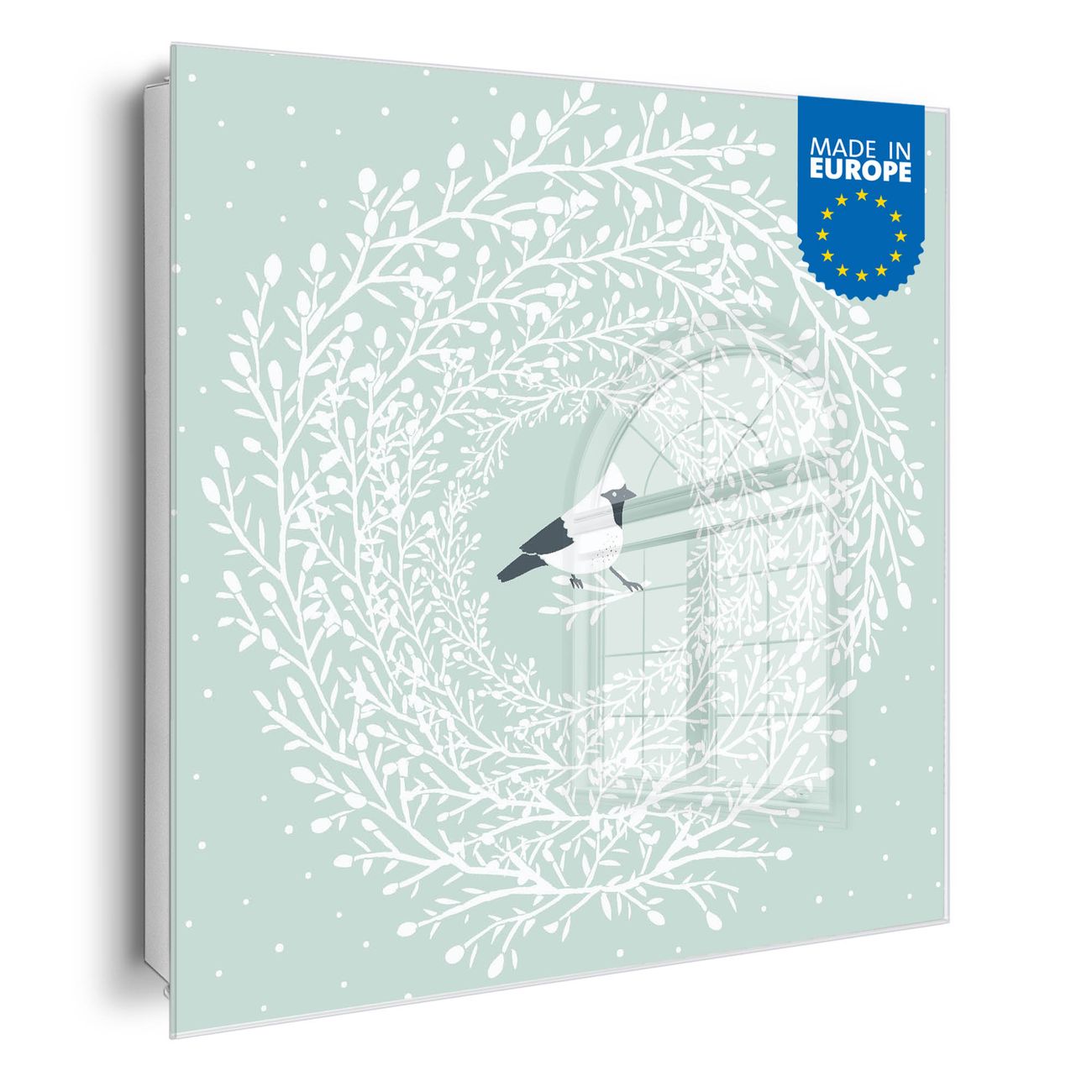 Schlüsselkasten Glas Motiv Vogel im Kranz