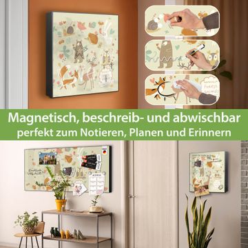 Bringe Ordnung und Eleganz in deinen Eingangsbereich mit dem banjado Schlüsselkasten Motiv Motiv Waldtiere. Die moderne Schlüsselbox kombiniert funktionales Design mit hochwertiger Verarbeitung und wird so zu einem echten Hingucker in Flur, Büro oder Ferienwohnung. ✅ Stilvolle Schlüsselaufbewahrung mit Motiv Motiv Waldtiere Der Design-Schlüsselkasten Motiv Motiv Waldtiere bietet Platz für bis zu 32 Schlüssel, die auf 4 stabilen Reihen mit je 8 Haken übersichtlich verstaut werden. Mit seinen kompakten Maßen von 30 x 30 x 5 cm passt die Schlüsselbox perfekt auch in kleinere Räume. Der schwarz lackierte Stahlkorpus mit links angeschlagenem Türscharnier harmoniert mit gedruckten Folie auf der Front und fügt sich nahtlos in jedes Wohnambiente ein. Ob als Schlüsselorganizer für Zuhause oder als praktische Lösung für Büros, Praxen und Gewerbe, der banjado Schlüsselkasten sorgt für Ordnung und Übersicht. Dank der magnetischen, mit Kreidestiften beschreibbaren Folie auf der Front kannst du Notizen anheften oder Termine direkt auf der Oberfläche festhalten. Die Schlüsselbox Motiv Motiv Waldtiere zur Wandmontage wird inklusive Befestigungsmaterial geliefert und ist schnell angebracht. So hast du deine Schlüssel jederzeit griffbereit und zugleich stilvoll verstaut. Mit diesem banjado Schlüsselkasten Motiv Motiv Waldtiere kombinierst du praktische Aufbewahrung mit stilvollem Wohndesign. Ob privat oder geschäftlich, die Schlüsselbox sorgt für mehr Ordnung, Übersicht und ein wohnliches Ambiente.Vorteile im Überblick