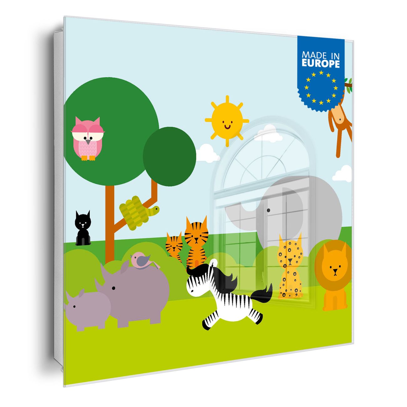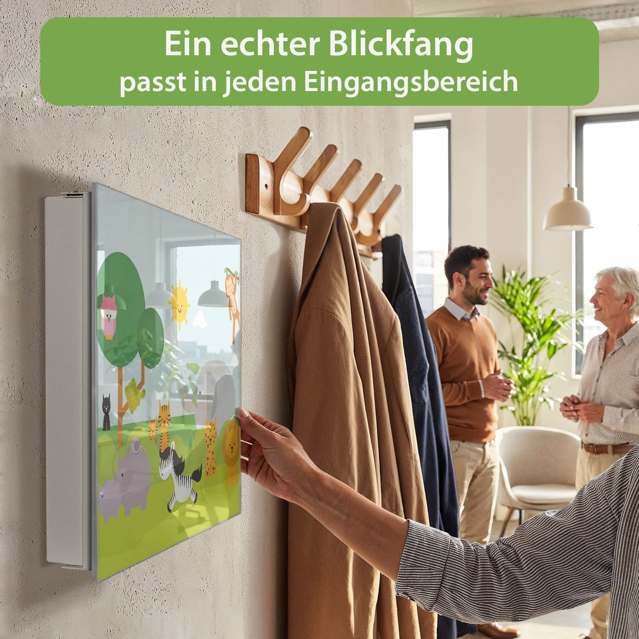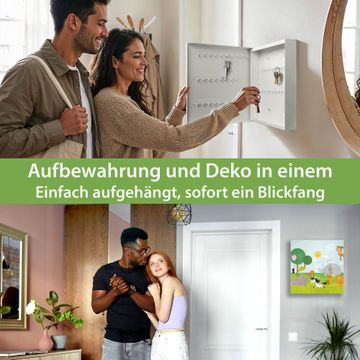 Bringe Ordnung und Eleganz in deinen Eingangsbereich mit dem banjado Schlüsselkasten Motiv Motiv Wilde Tiere. Die moderne Schlüsselbox kombiniert funktionales Design mit hochwertiger Verarbeitung und wird so zu einem echten Hingucker in Flur, Büro oder Ferienwohnung. ✅ Stilvolle Schlüsselaufbewahrung mit Glasfront im Motiv Motiv Wilde Tiere Der Design-Schlüsselkasten Motiv Motiv Wilde Tiere bietet Platz für bis zu 50 Schlüssel, die auf 5 stabilen Reihen mit je 10 Haken übersichtlich verstaut werden. Mit seinen kompakten Maßen von 30 x 30 x 5 cm passt die Schlüsselbox perfekt auch in kleinere Räume. Der weiß lackierte Stahlkorpus mit rechts angeschlagenem Türscharnier harmoniert mit der Glasfront und fügt sich nahtlos in jedes Wohnambiente ein. Ob als Schlüsselorganizer für Zuhause oder als praktische Lösung für Büros, Praxen und Gewerbe, der banjado Schlüsselkasten sorgt für Ordnung und Übersicht. Dank der magnetischen, mit Kreidestiften beschreibbaren Glasfront kannst du Notizen anheften oder Termine direkt auf der Oberfläche festhalten. Die Schlüsselbox Motiv Motiv Wilde Tiere zur Wandmontage wird inklusive Befestigungsmaterial geliefert und ist schnell angebracht. So hast du deine Schlüssel jederzeit griffbereit und zugleich stilvoll verstaut. Mit diesem banjado Schlüsselkasten Motiv Motiv Wilde Tiere kombinierst du praktische Aufbewahrung mit stilvollem Wohndesign. Ob privat oder geschäftlich, die Schlüsselbox sorgt für mehr Ordnung, Übersicht und ein wohnliches Ambiente.Vorteile im Überblick