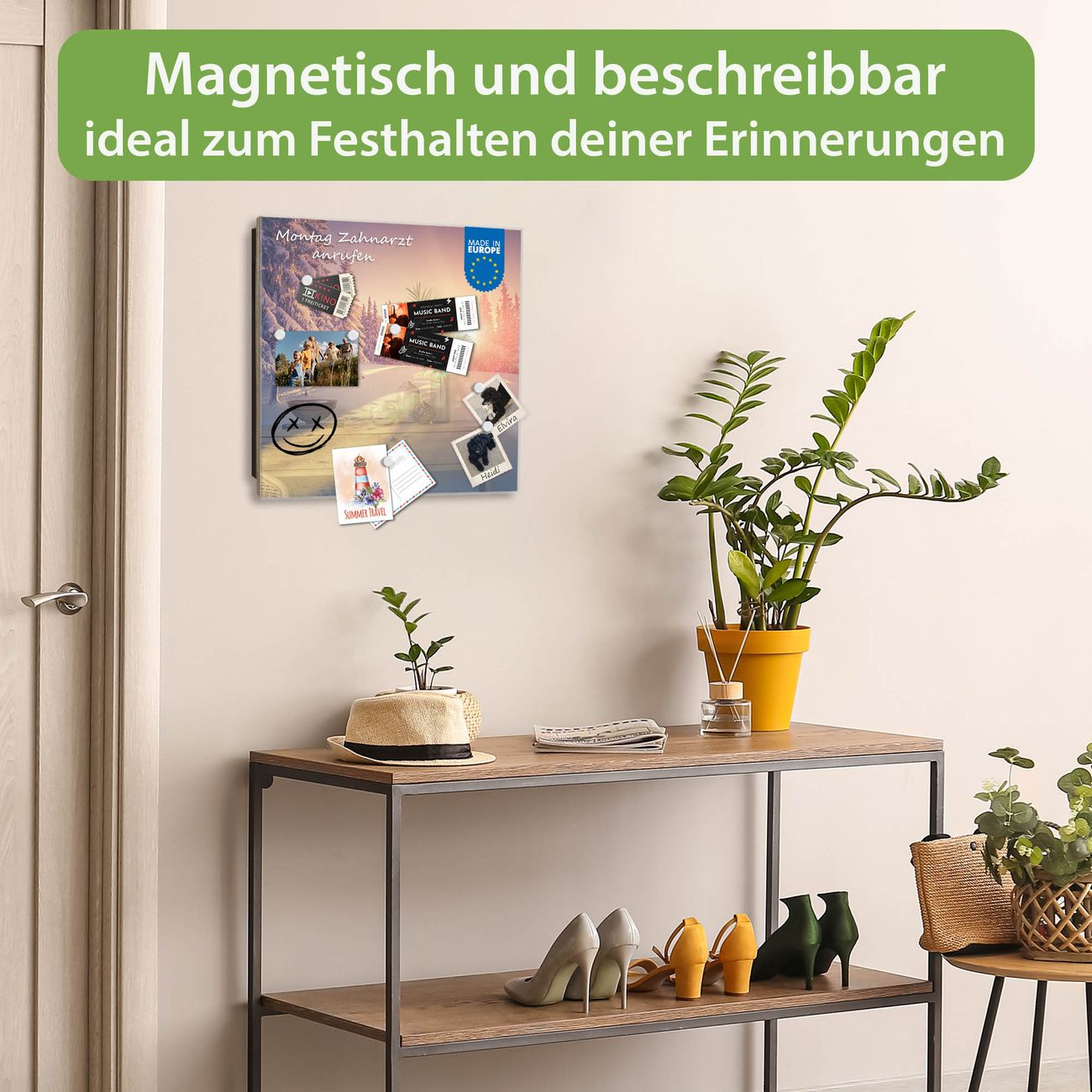 ✅ Magnetisch und mit Kreidestift beschreibbar, gehärtetes Glas, rechts angeschlagene TürOrdnung und Design in einem