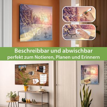 Bringe Ordnung und Eleganz in deinen Eingangsbereich mit dem banjado Schlüsselkasten Motiv Motiv Winterabend. Die moderne Schlüsselbox kombiniert funktionales Design mit hochwertiger Verarbeitung und wird so zu einem echten Hingucker in Flur, Büro oder Ferienwohnung. ✅ Stilvolle Schlüsselaufbewahrung mit Glasfront im Motiv Motiv Winterabend Der Design-Schlüsselkasten Motiv Motiv Winterabend bietet Platz für bis zu 50 Schlüssel, die auf 5 stabilen Reihen mit je 10 Haken übersichtlich verstaut werden. Mit seinen kompakten Maßen von 30 x 30 x 5 cm passt die Schlüsselbox perfekt auch in kleinere Räume. Der schwarz lackierte Stahlkorpus mit rechts angeschlagenem Türscharnier harmoniert mit der Glasfront und fügt sich nahtlos in jedes Wohnambiente ein. Ob als Schlüsselorganizer für Zuhause oder als praktische Lösung für Büros, Praxen und Gewerbe, der banjado Schlüsselkasten sorgt für Ordnung und Übersicht. Dank der magnetischen, mit Kreidestiften beschreibbaren Glasfront kannst du Notizen anheften oder Termine direkt auf der Oberfläche festhalten. Die Schlüsselbox Motiv Motiv Winterabend zur Wandmontage wird inklusive Befestigungsmaterial geliefert und ist schnell angebracht. So hast du deine Schlüssel jederzeit griffbereit und zugleich stilvoll verstaut. Mit diesem banjado Schlüsselkasten Motiv Motiv Winterabend kombinierst du praktische Aufbewahrung mit stilvollem Wohndesign. Ob privat oder geschäftlich, die Schlüsselbox sorgt für mehr Ordnung, Übersicht und ein wohnliches Ambiente.Vorteile im Überblick
