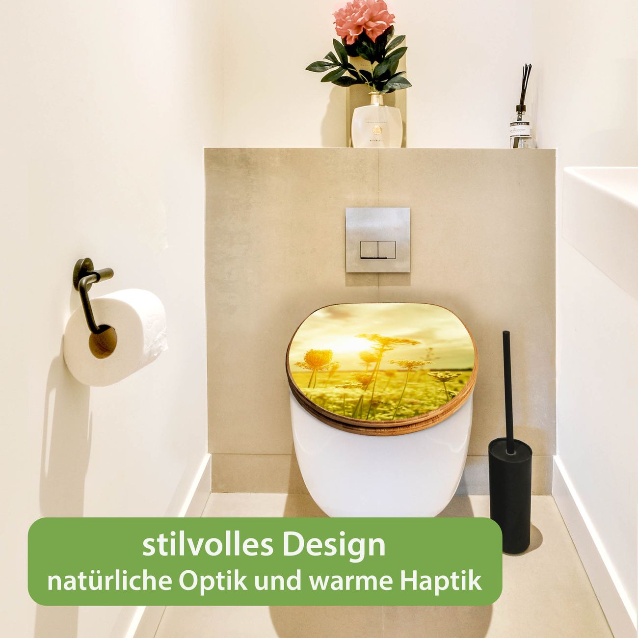 Design WC-Sitz Bambus Holz Motiv Dill im Sonnenlicht