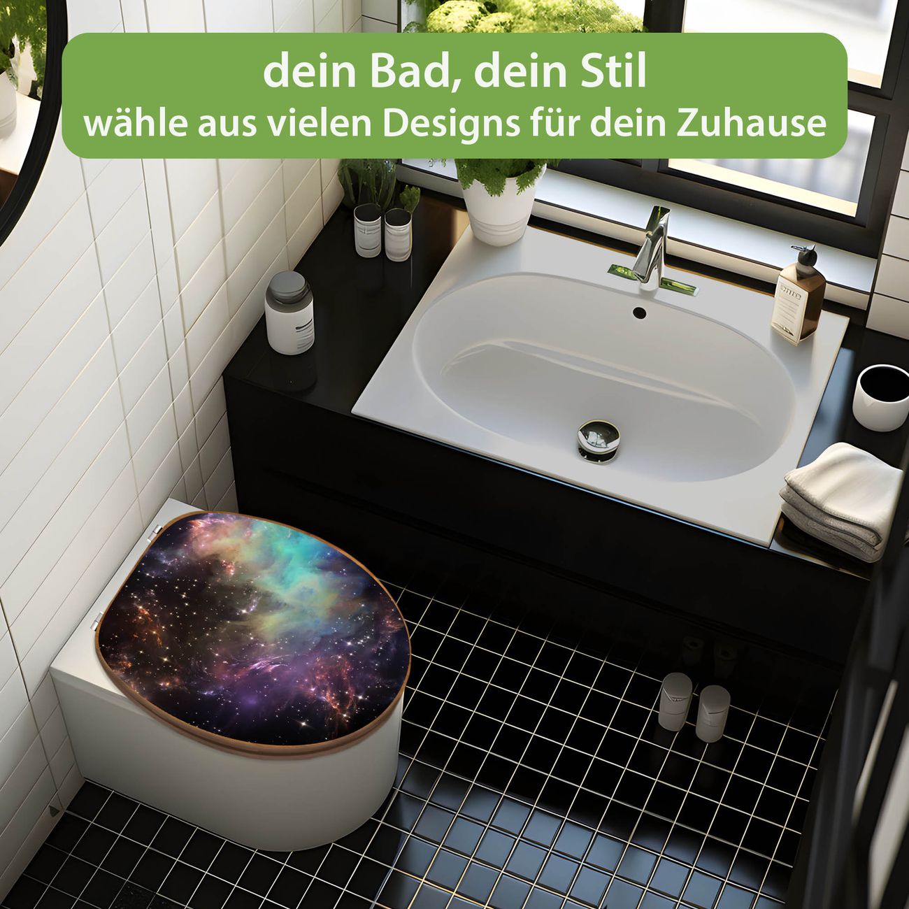 Mit dem banjado Toilettensitz in Bambus verbinden Sie Design und Funktionalität. Sie erhalten den WC-Sitz mit bewährt schwerer Holz Qualität und Universal Scharnieren. Das Motiv Motiv Im Weltall 2 besteht aus einer schutzlaminierten Motivfolie, die durch das Schutzlaminat zusätzlich vor Kratzern schützt. Durch diesen Motivdruck wird der WC-Sitz zu einem Blickfang in Ihrem Bad.