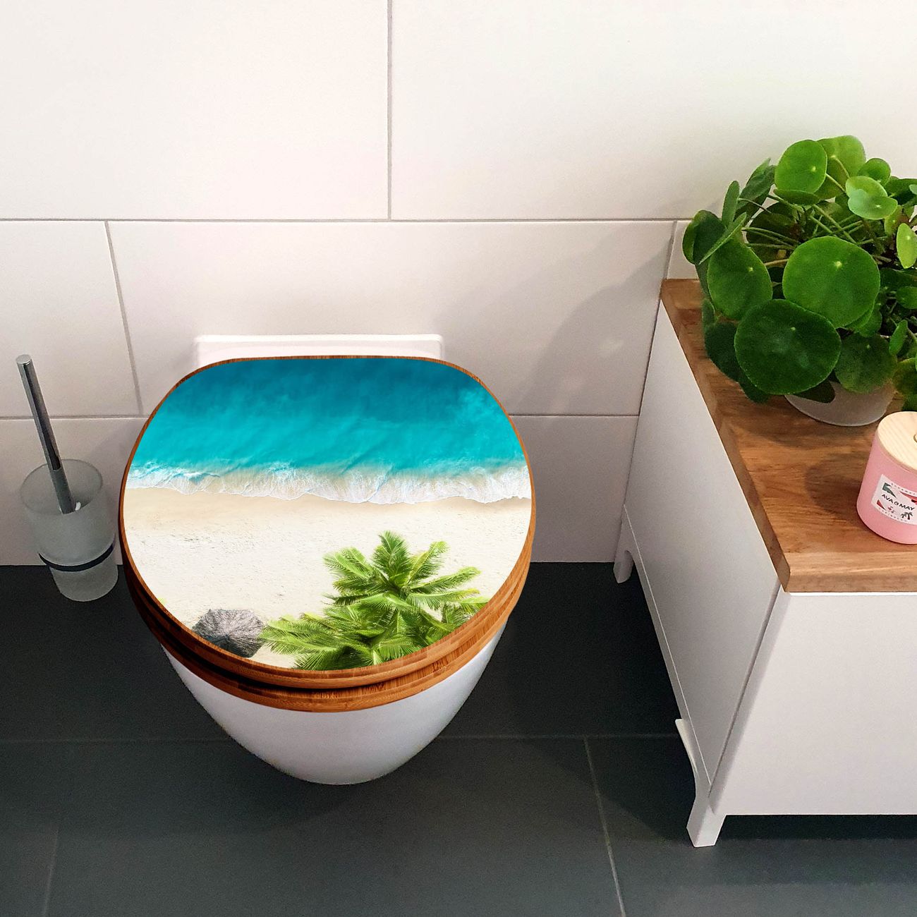 Design WC-Sitz Bambus Holz Motiv Strandtag