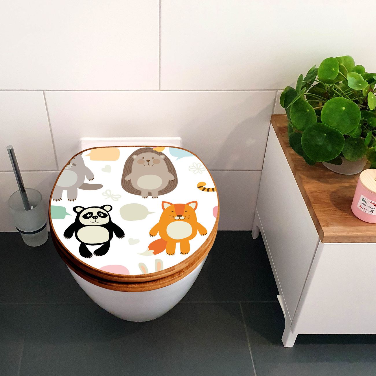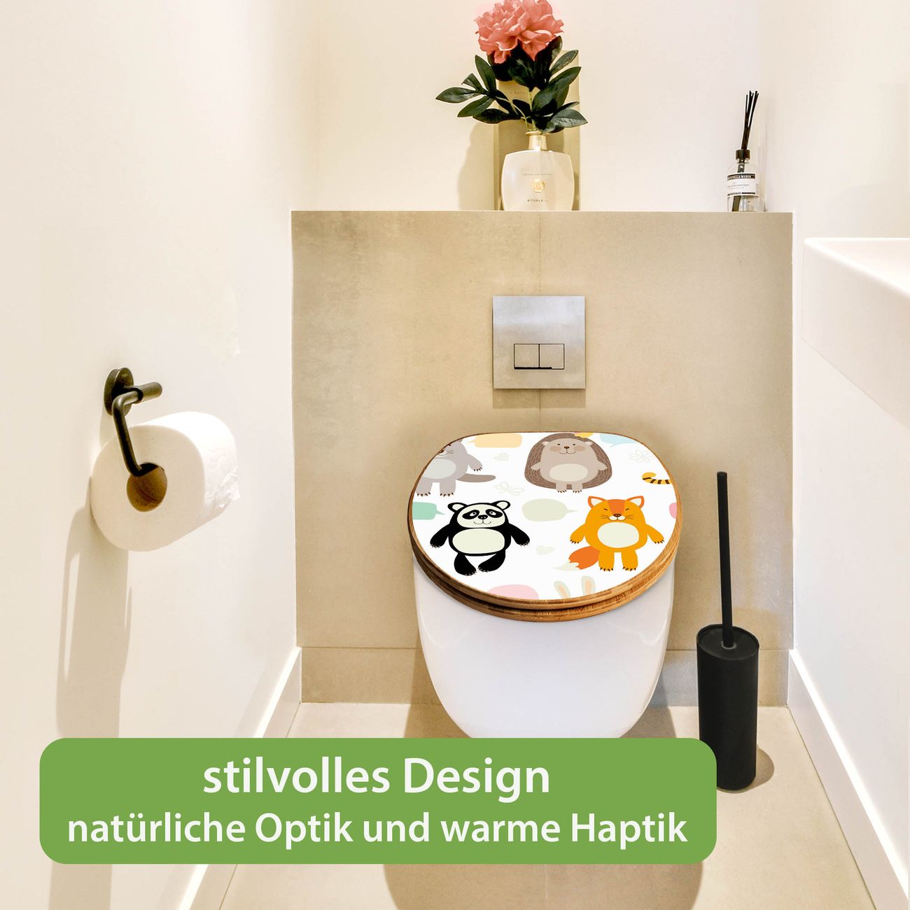 Design WC-Sitz Bambus Holz Motiv Tierfreunde