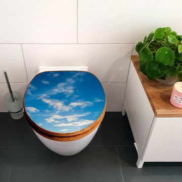 Mit dem banjado Toilettensitz in Bambus verbinden Sie Design und Funktionalität. Sie erhalten den WC-Sitz mit bewährt schwerer Holz Qualität und Universal Scharnieren. Das Motiv Motiv Wolken 11 besteht aus einer schutzlaminierten Motivfolie, die durch das Schutzlaminat zusätzlich vor Kratzern schützt. Durch diesen Motivdruck wird der WC-Sitz zu einem Blickfang in Ihrem Bad.