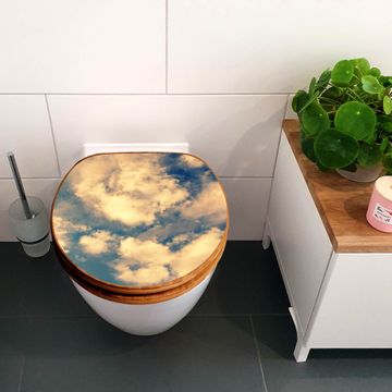 Mit dem banjado Toilettensitz in Bambus verbinden Sie Design und Funktionalität. Sie erhalten den WC-Sitz mit bewährt schwerer Holz Qualität und Universal Scharnieren. Das Motiv Motiv Wolken 3 besteht aus einer schutzlaminierten Motivfolie, die durch das Schutzlaminat zusätzlich vor Kratzern schützt. Durch diesen Motivdruck wird der WC-Sitz zu einem Blickfang in Ihrem Bad.