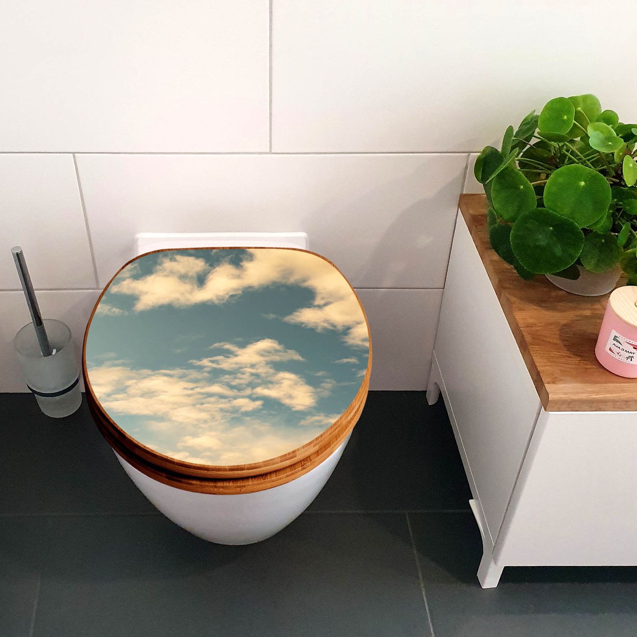 Design WC-Sitz Bambus Holz Motiv Wolken 6