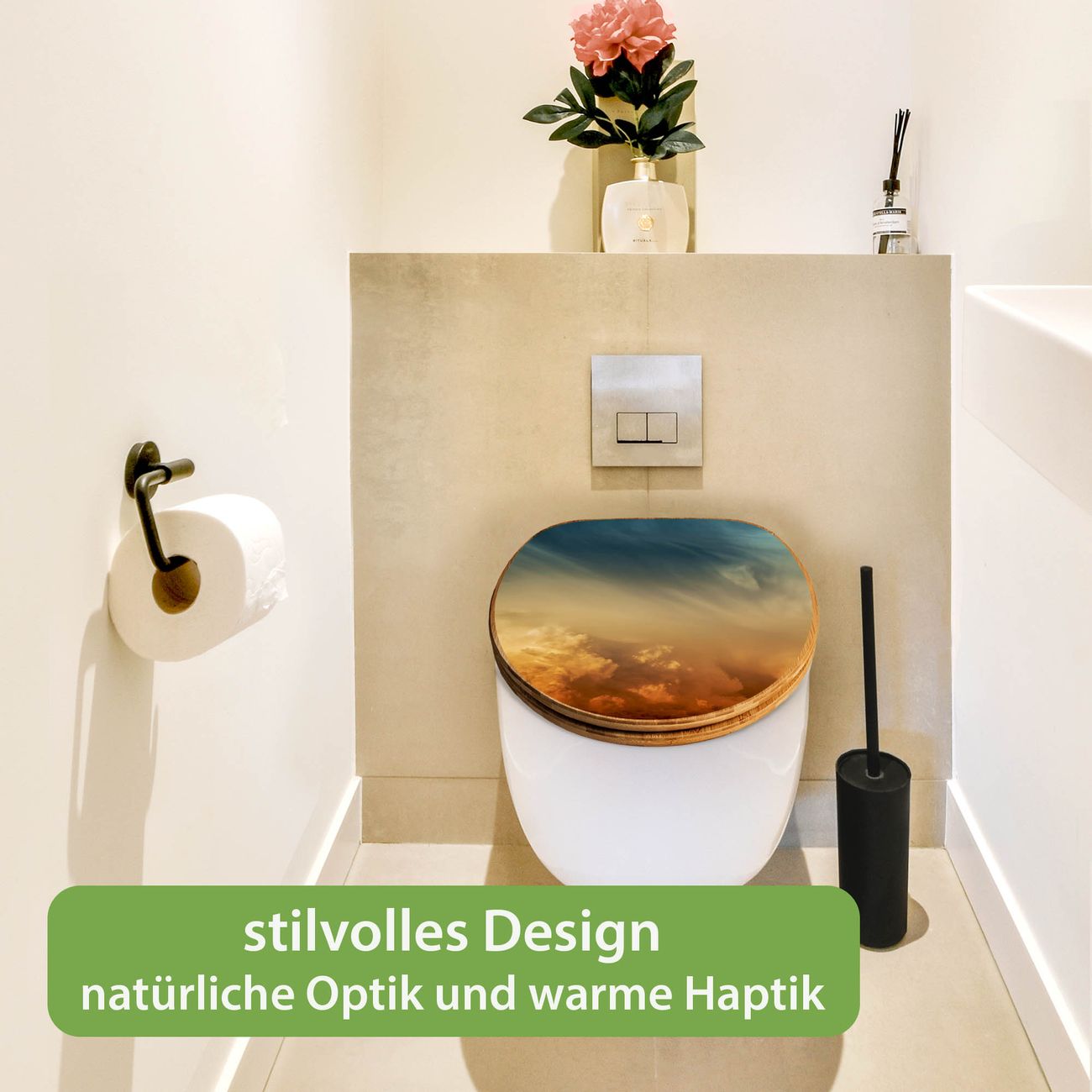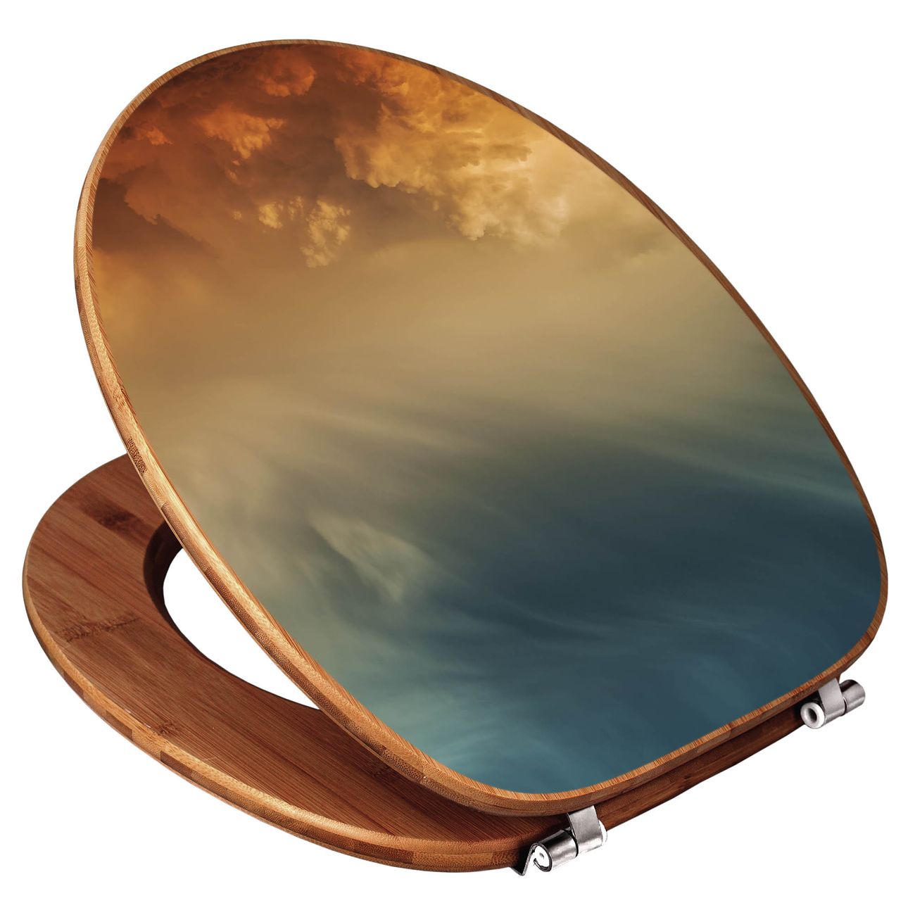 Mit dem banjado Toilettensitz in Bambus verbinden Sie Design und Funktionalität. Sie erhalten den WC-Sitz mit bewährt schwerer Holz Qualität und Universal Scharnieren. Das Motiv Motiv Wolken in der Dämmerung besteht aus einer schutzlaminierten Motivfolie, die durch das Schutzlaminat zusätzlich vor Kratzern schützt. Durch diesen Motivdruck wird der WC-Sitz zu einem Blickfang in Ihrem Bad.