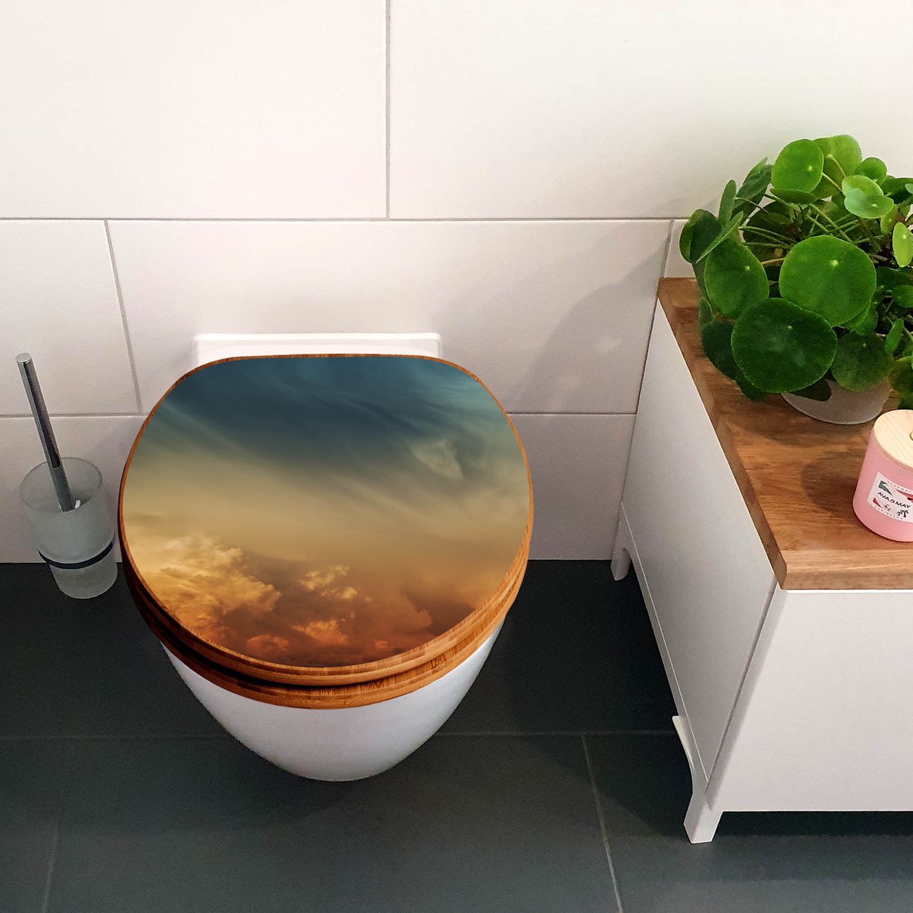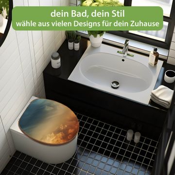 Design WC-Sitz Bambus Holz Motiv Wolken in der Dämmerung