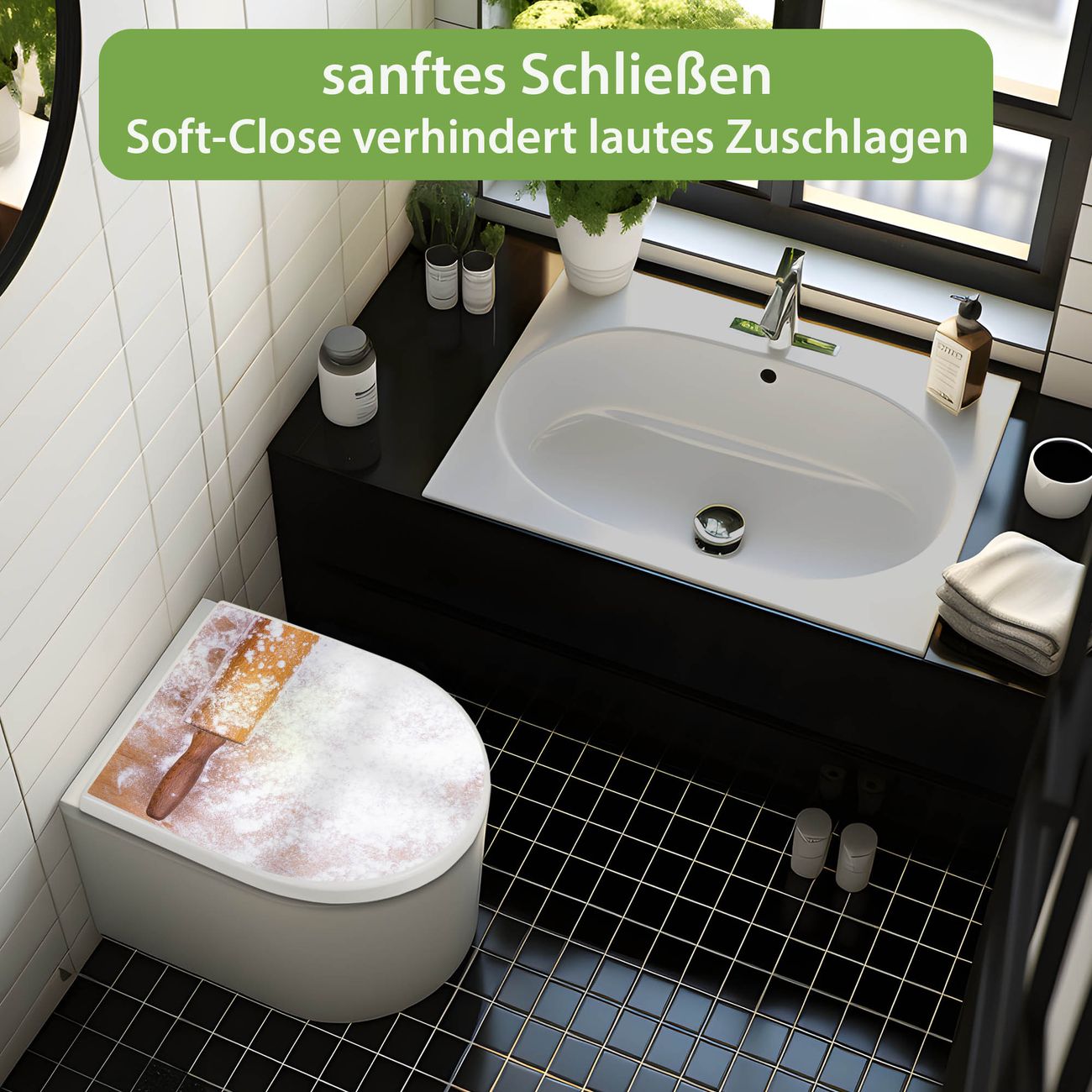 WC Sitz mit Absenkautomatik D Form Motiv Backen