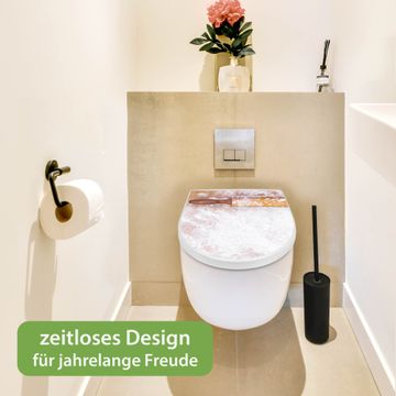 Der Toilettensitz mit Softclose Absenkautomatik besteht aus hochwertigem Duroplast. Ein Material, dass robust, angenehm in der Haptik und hygienisch ist. Die Montage erfolgt komplett von oben und ist kinderleicht.