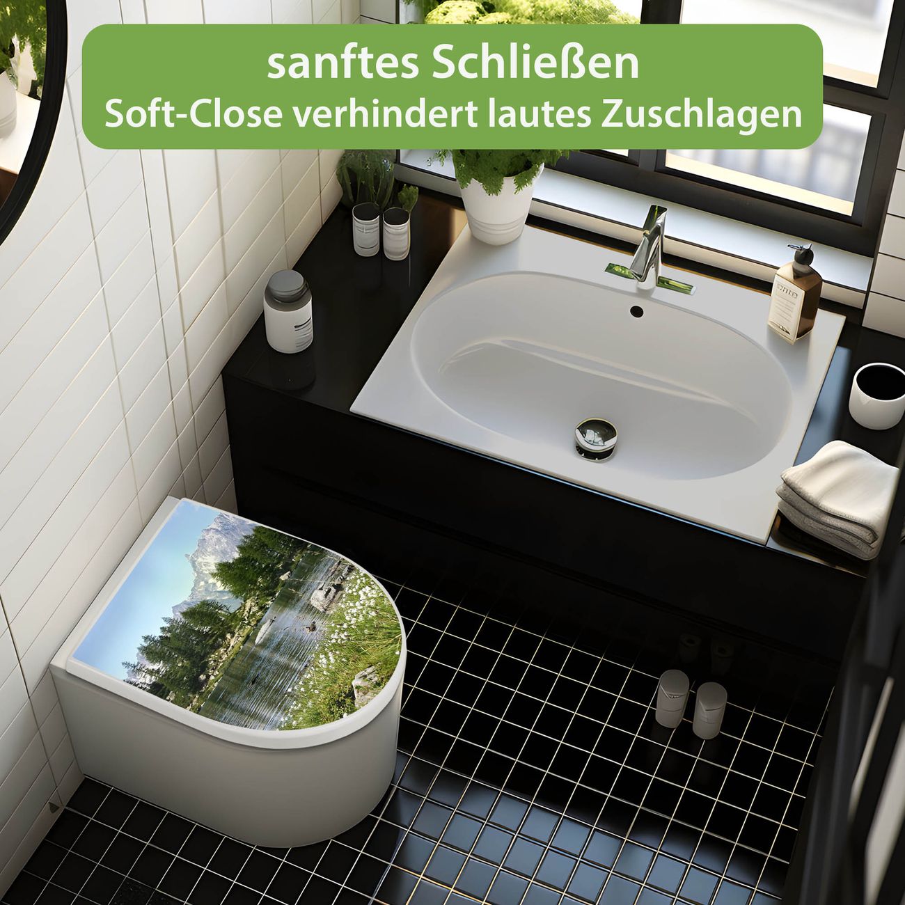 WC Sitz mit Absenkautomatik D Form Motiv Bergidylle