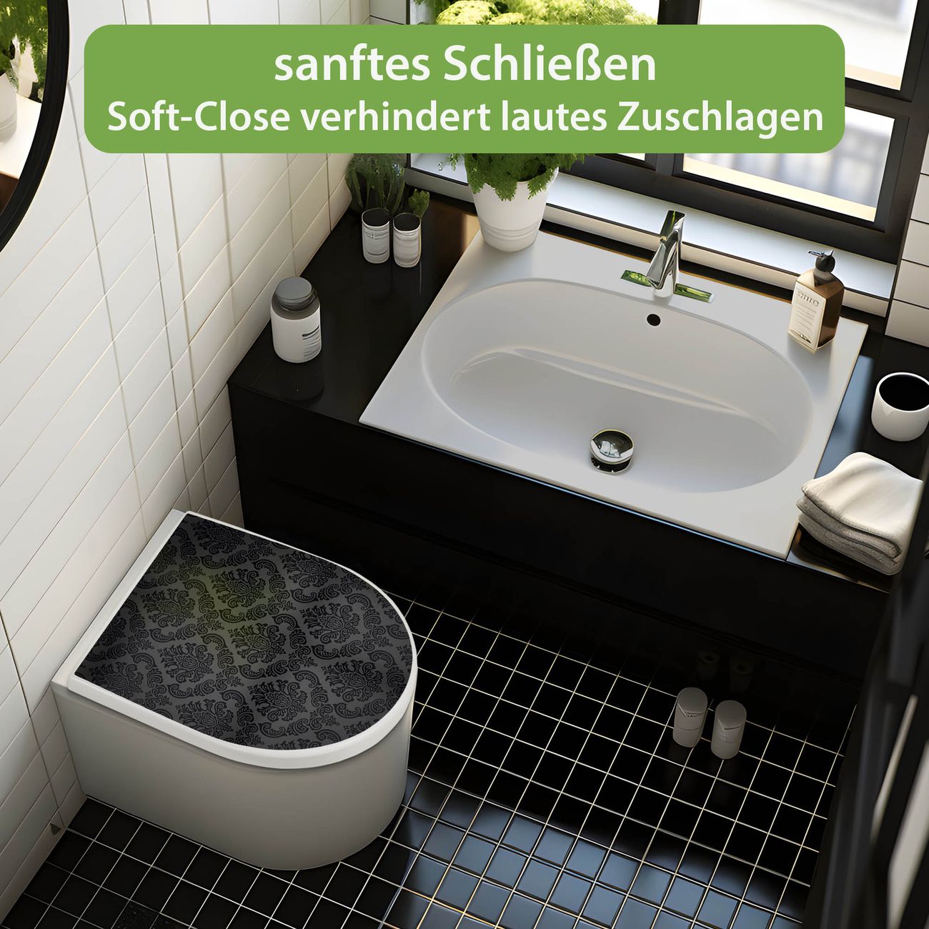 WC Sitz mit Absenkautomatik D Form Motiv Black Deluxe