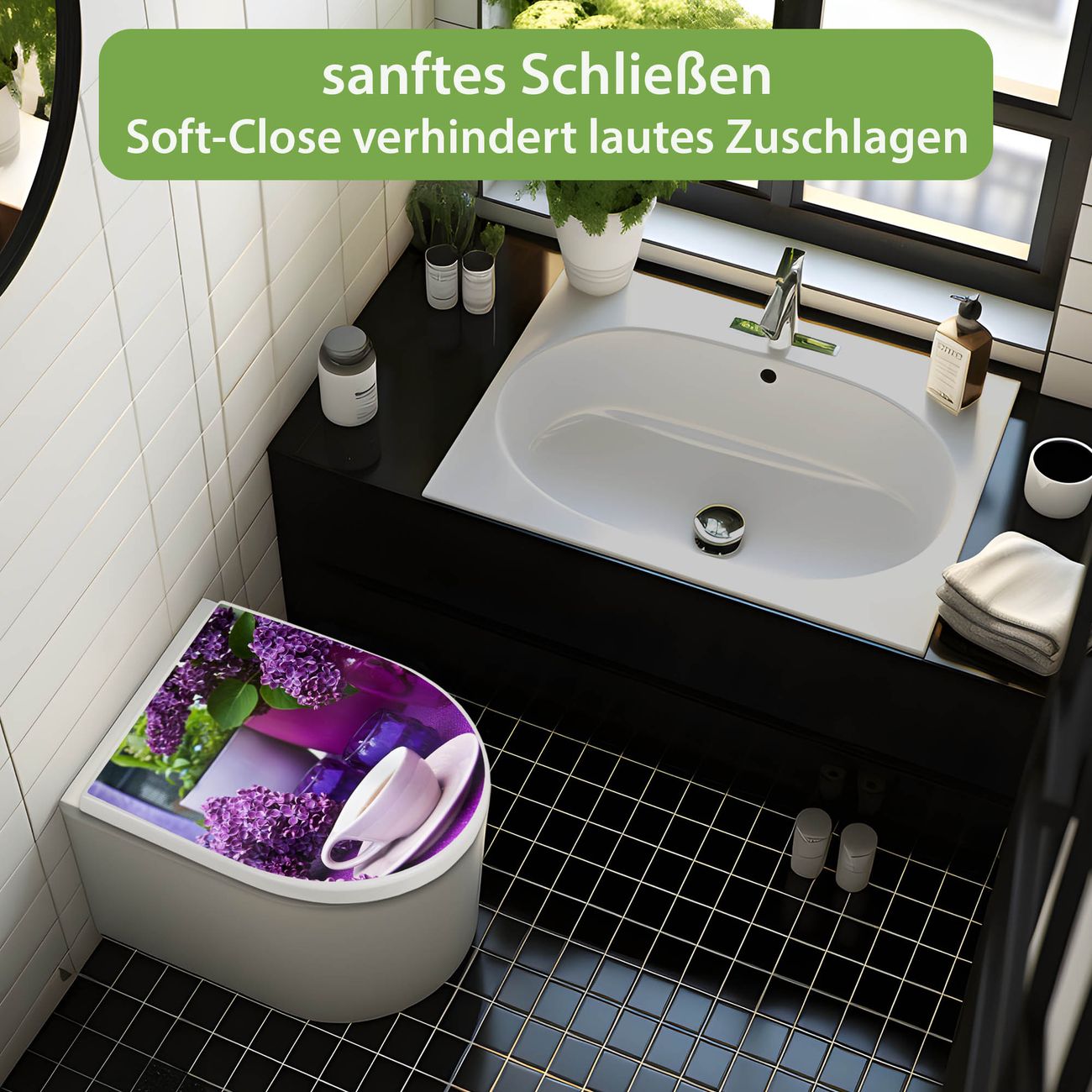 WC Sitz mit Absenkautomatik D Form Motiv Flieder