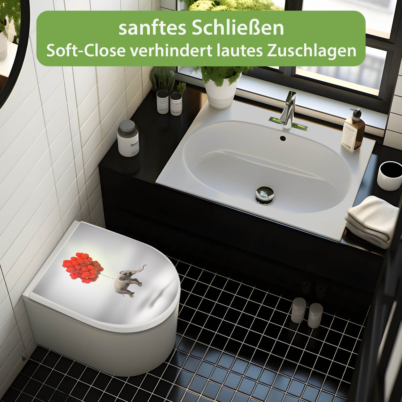WC Sitz mit Absenkautomatik D Form Motiv Fliegender Elefant