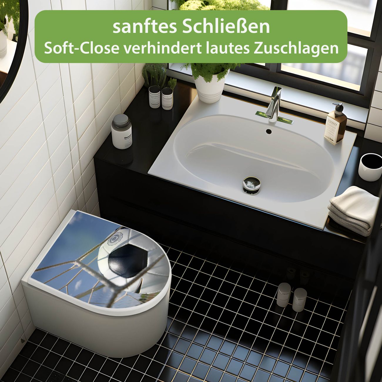 WC Sitz mit Absenkautomatik D Form Motiv Fußball