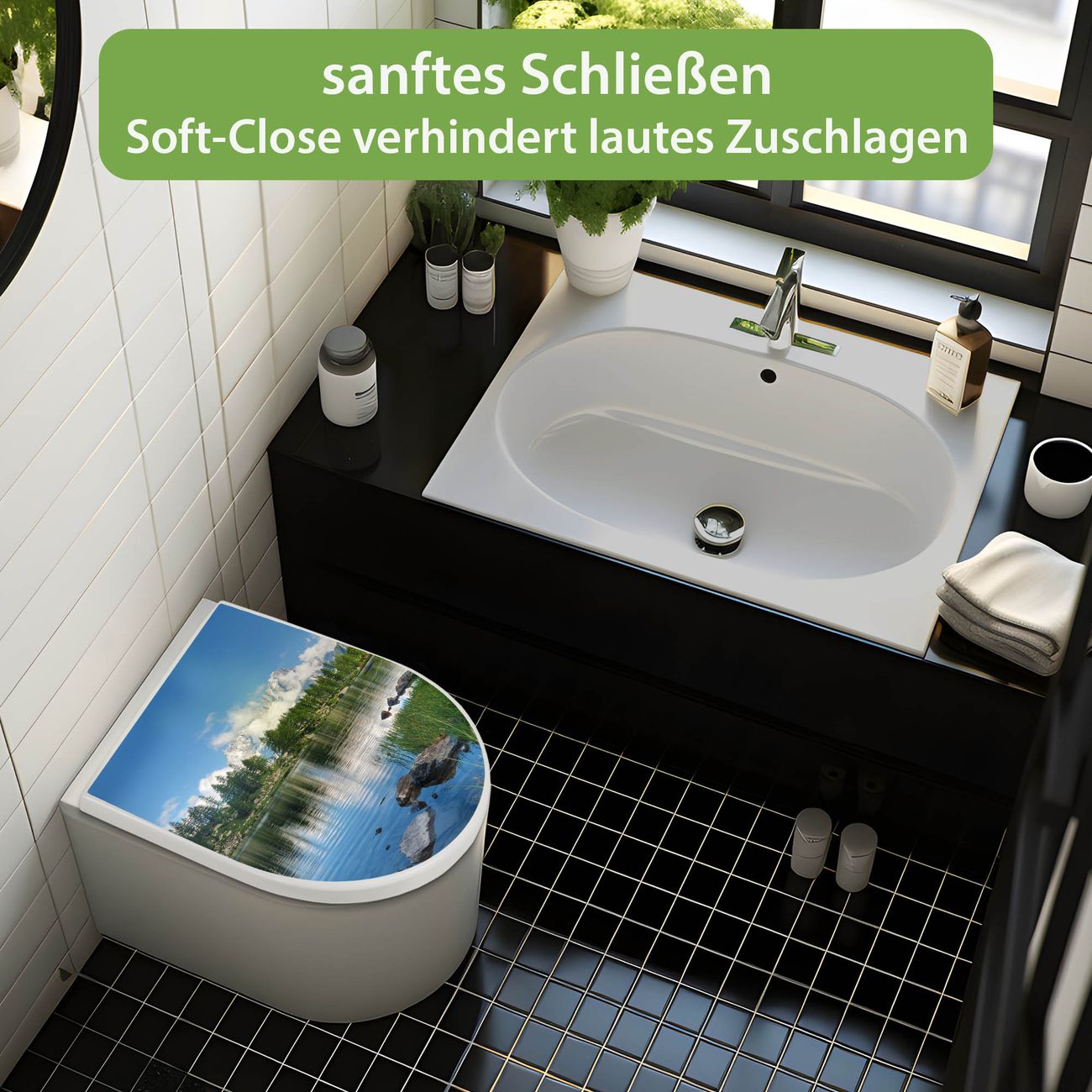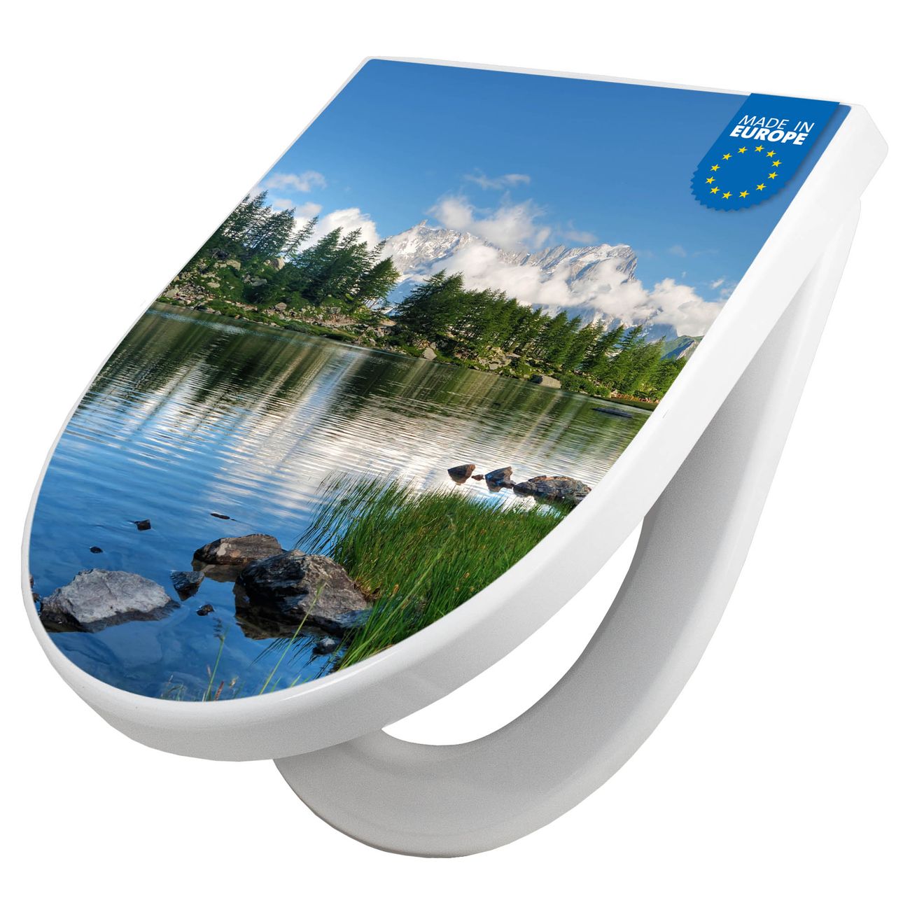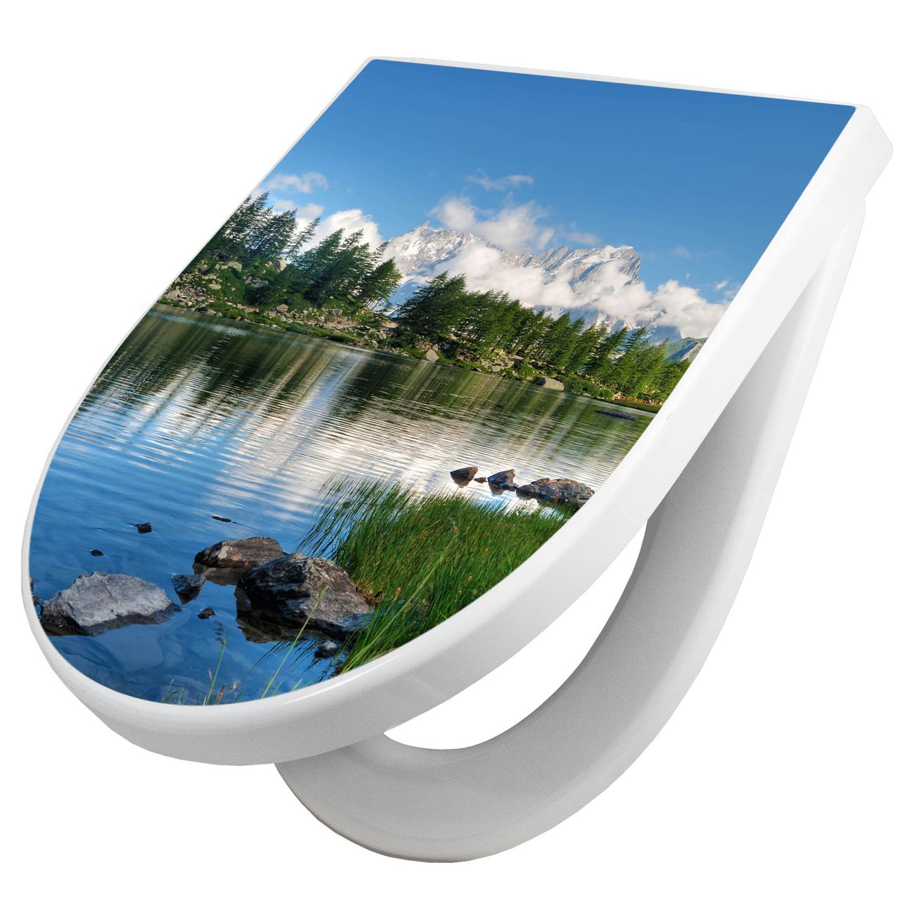 WC Sitz mit Absenkautomatik D Form Motiv Gebirgssee