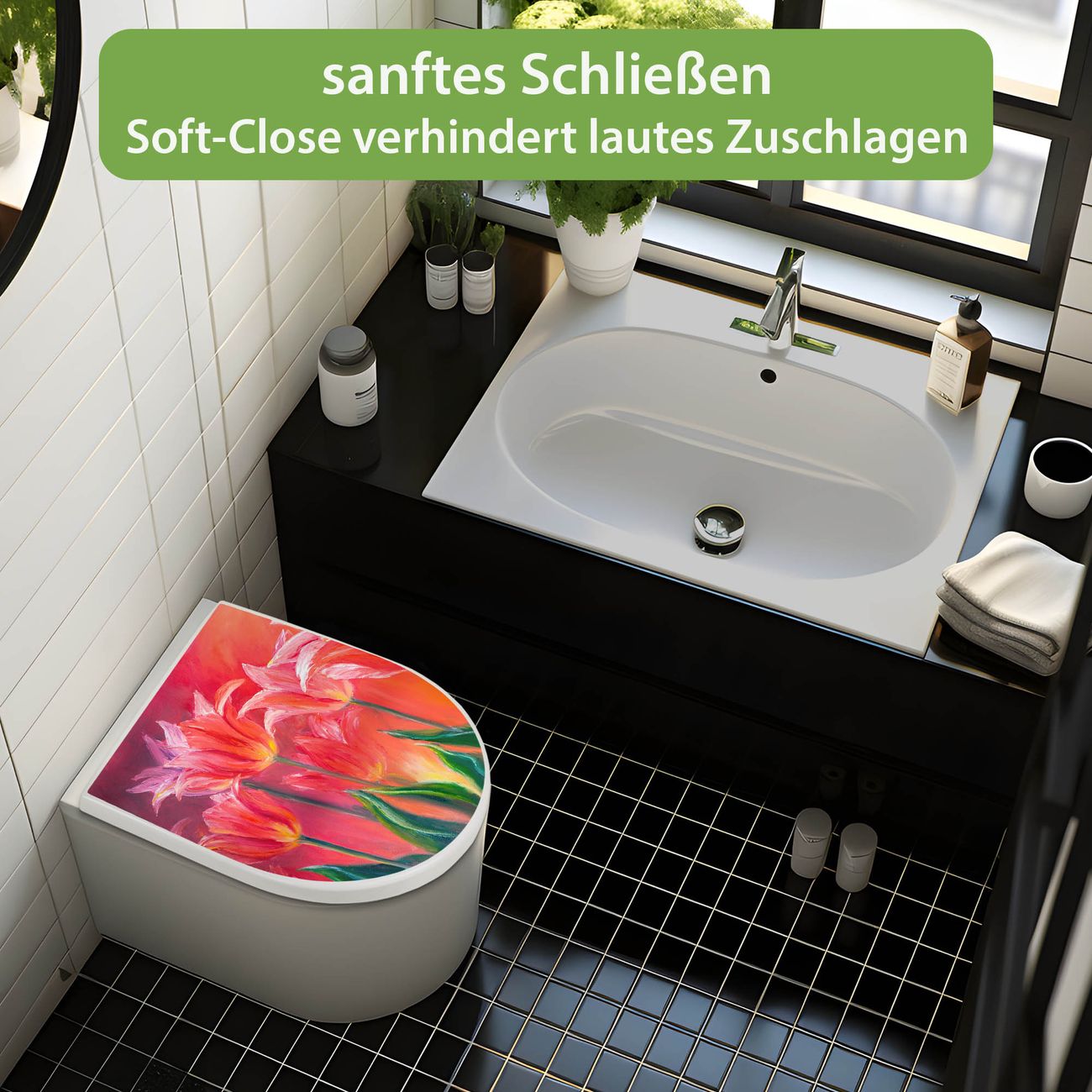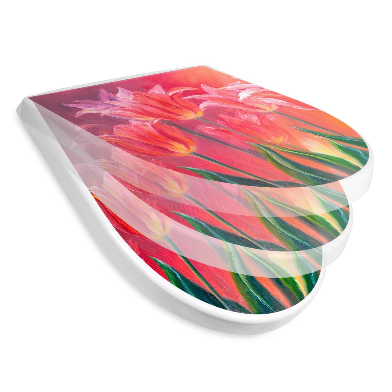 WC Sitz mit Absenkautomatik D Form Motiv Gemalte Tulpen