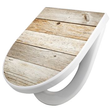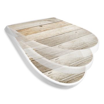 WC Sitz mit Absenkautomatik D Form Motiv Graues Holz