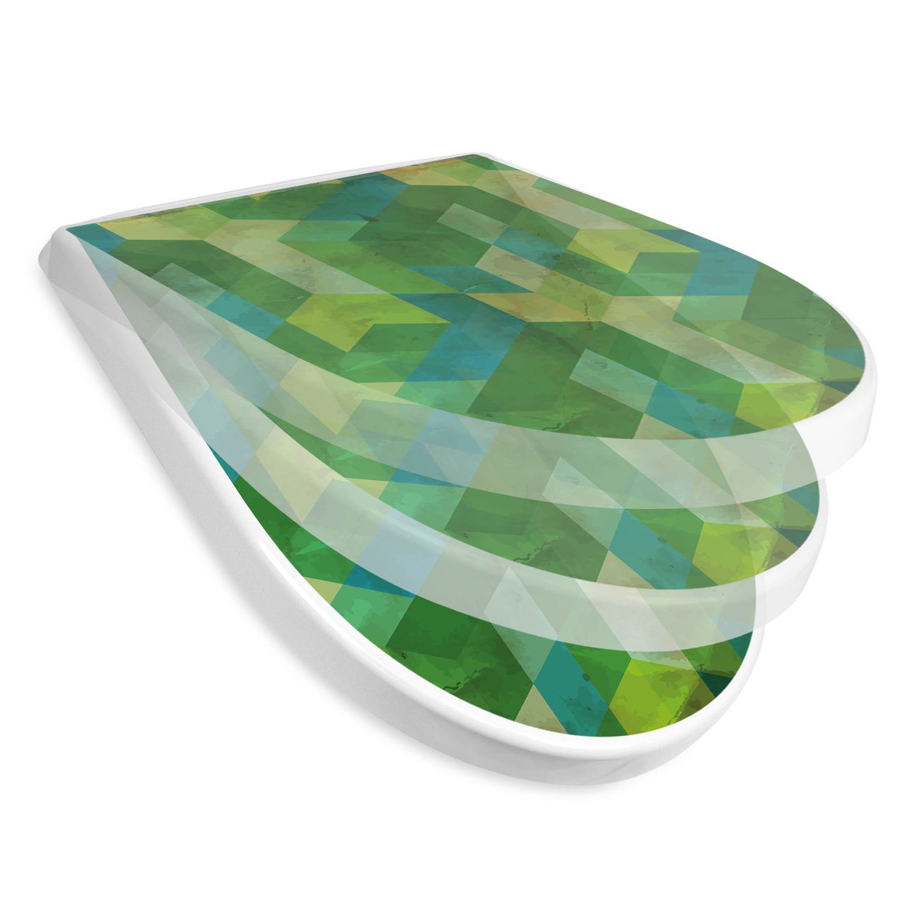 WC Sitz mit Absenkautomatik D Form Motiv Grüne Würfel