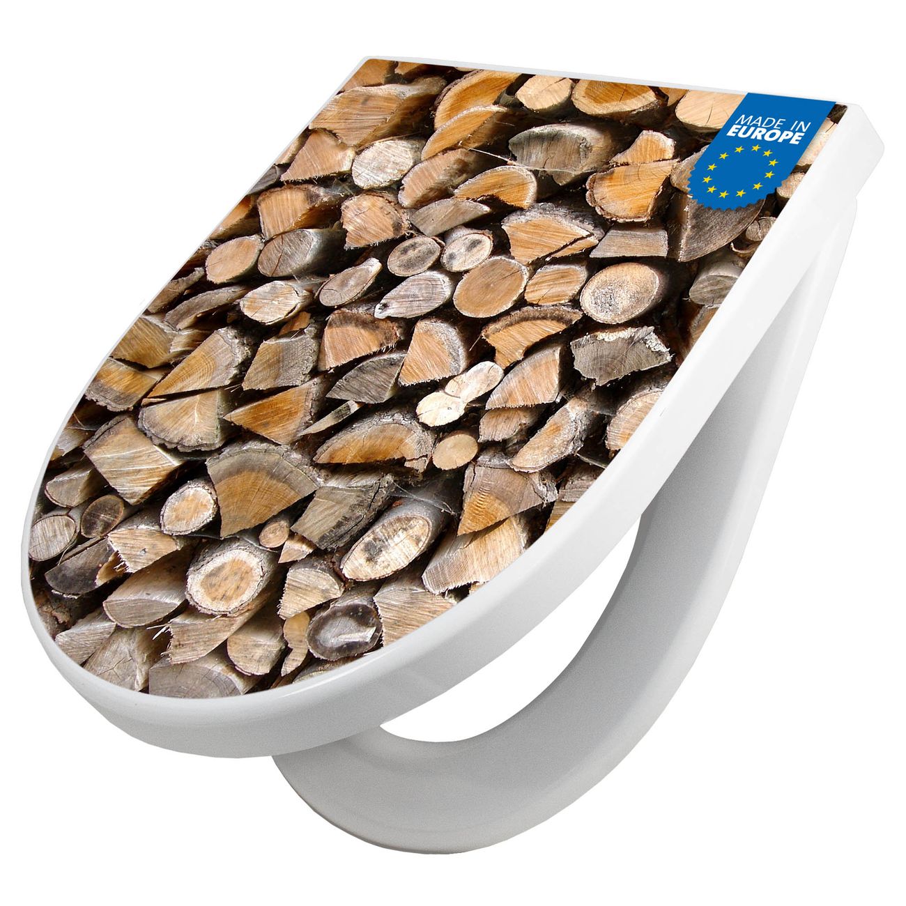 WC Sitz mit Absenkautomatik D Form Motiv Holzstapel