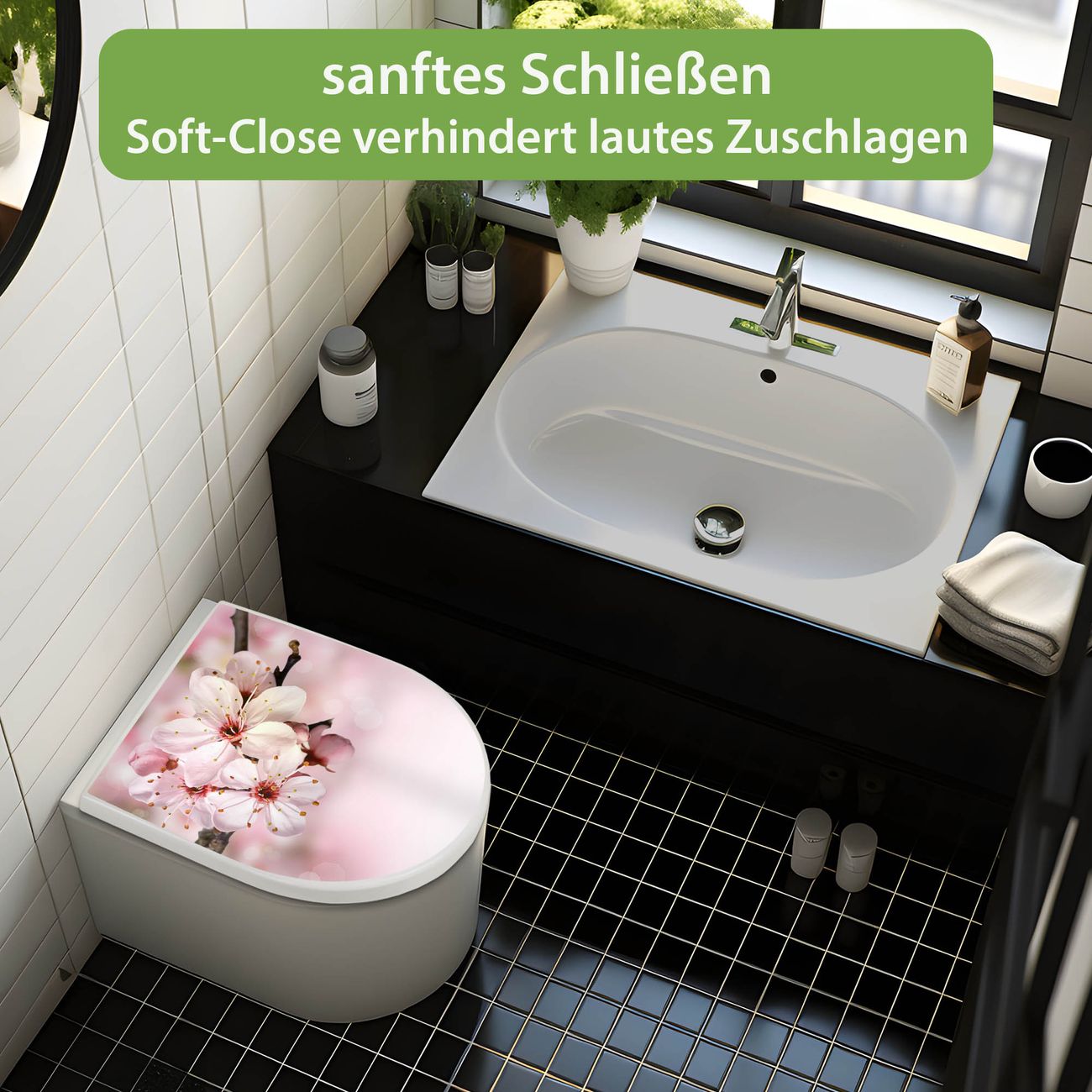 WC Sitz mit Absenkautomatik D Form Motiv Japanische Kirsche