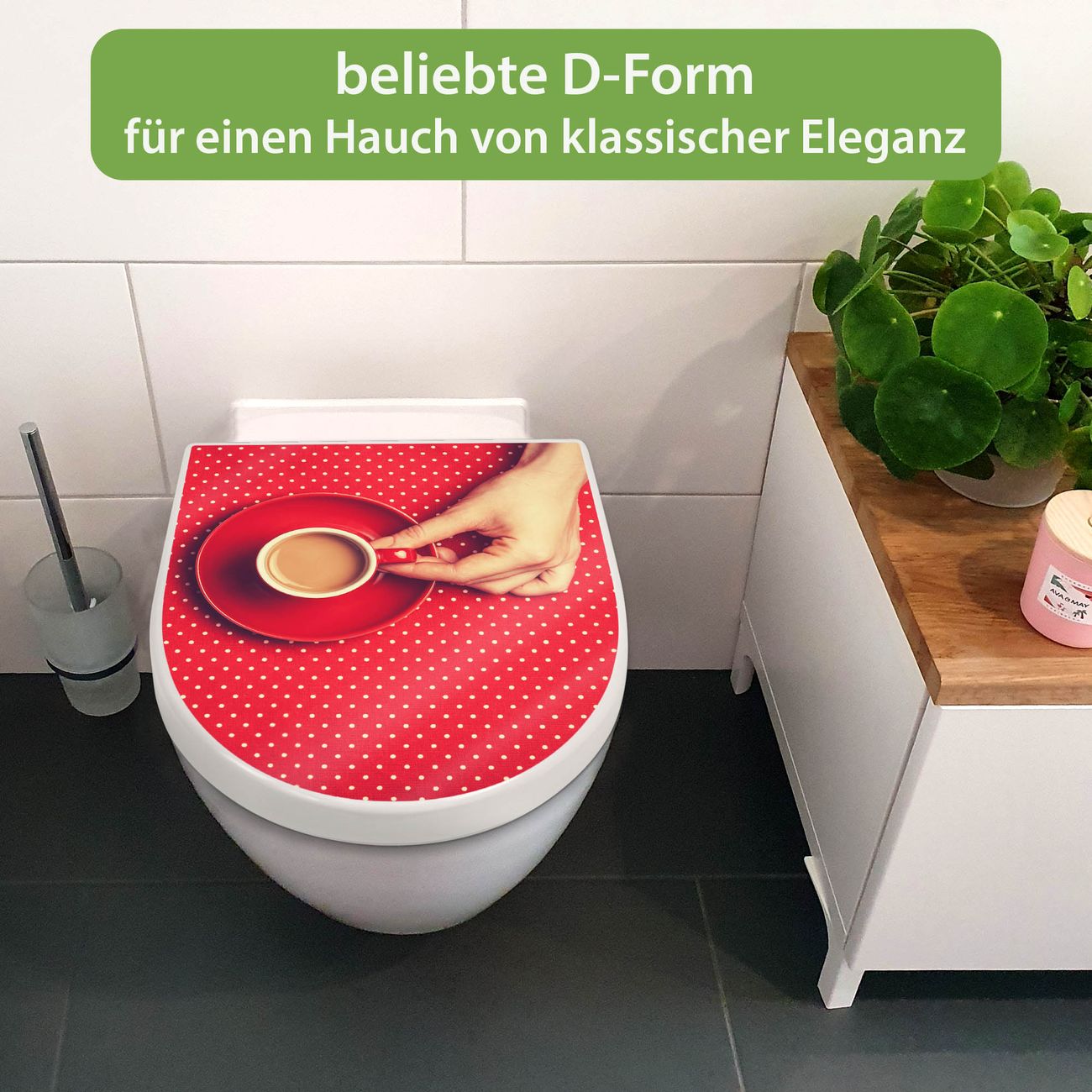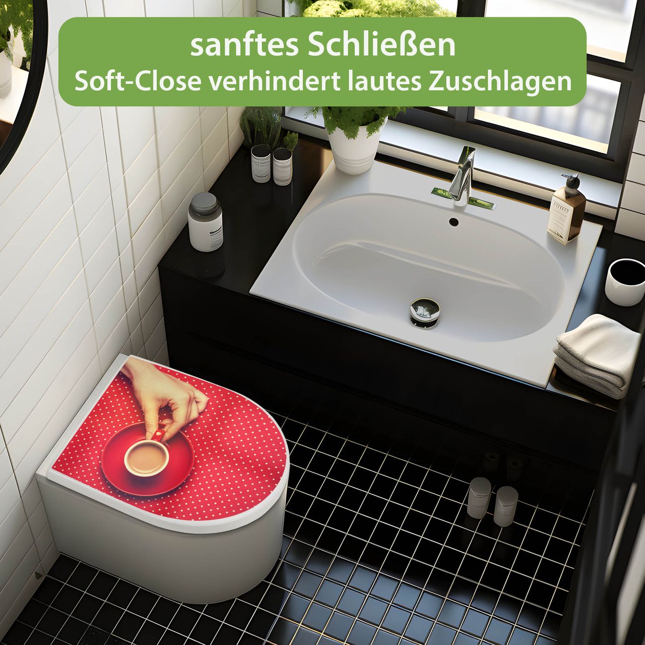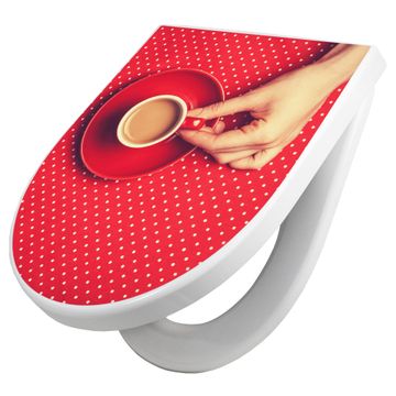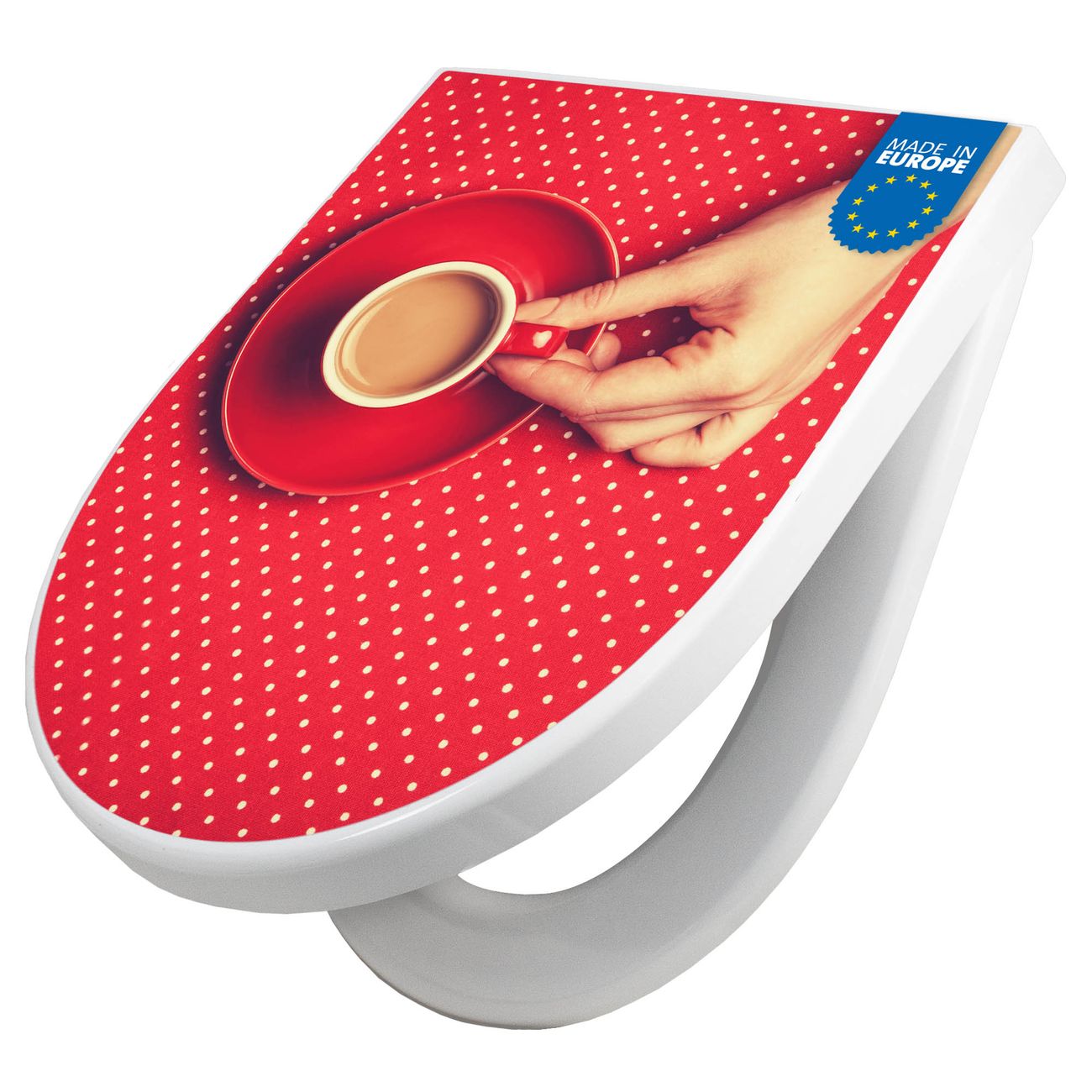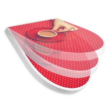 WC Sitz mit Absenkautomatik D Form Motiv Kaffee Rot Weiss