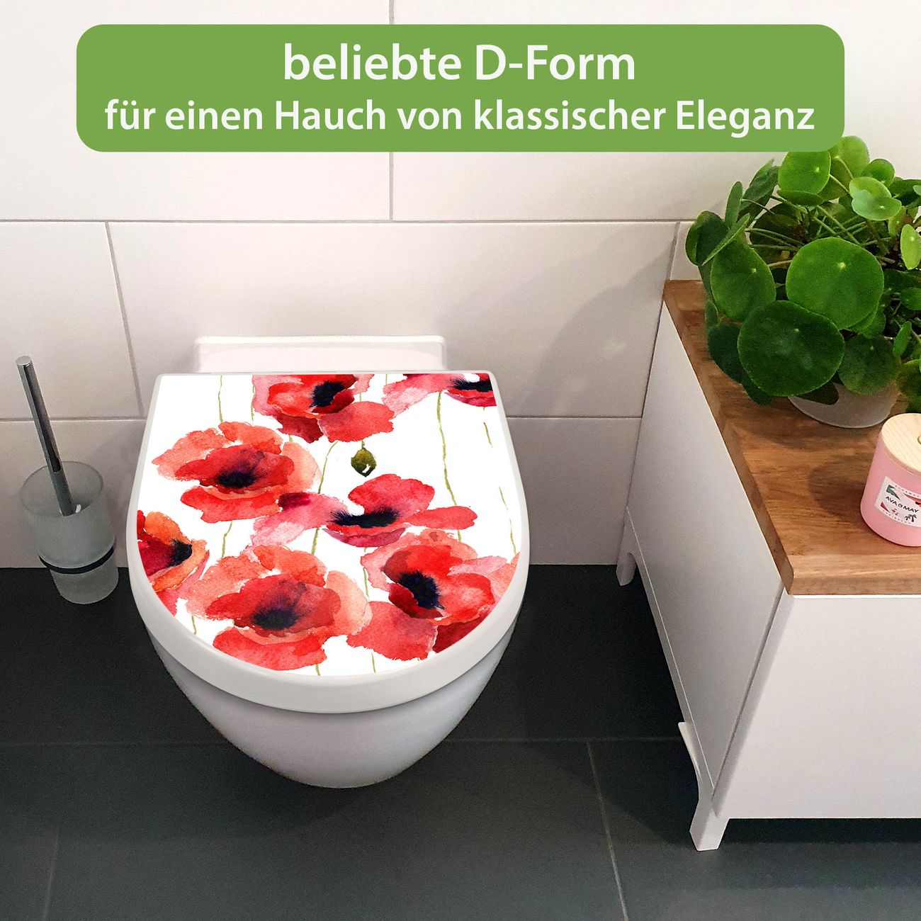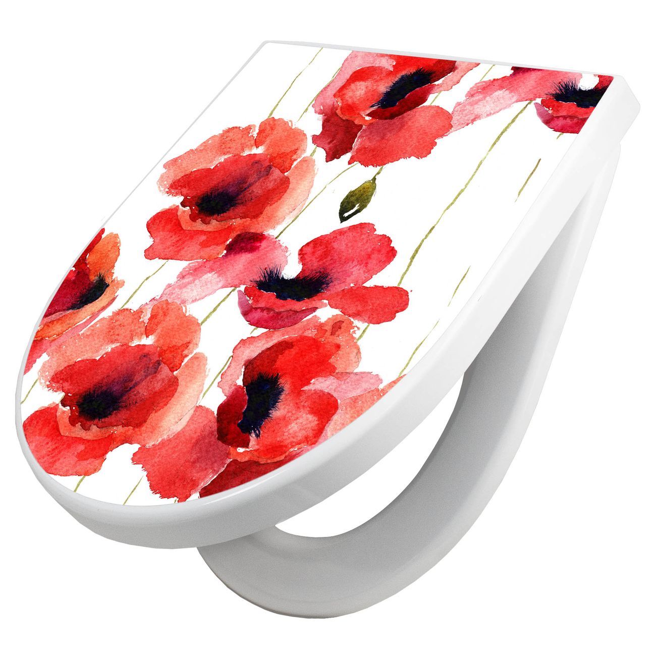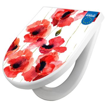 WC Sitz mit Absenkautomatik D Form Motiv Mohn Aquarell
