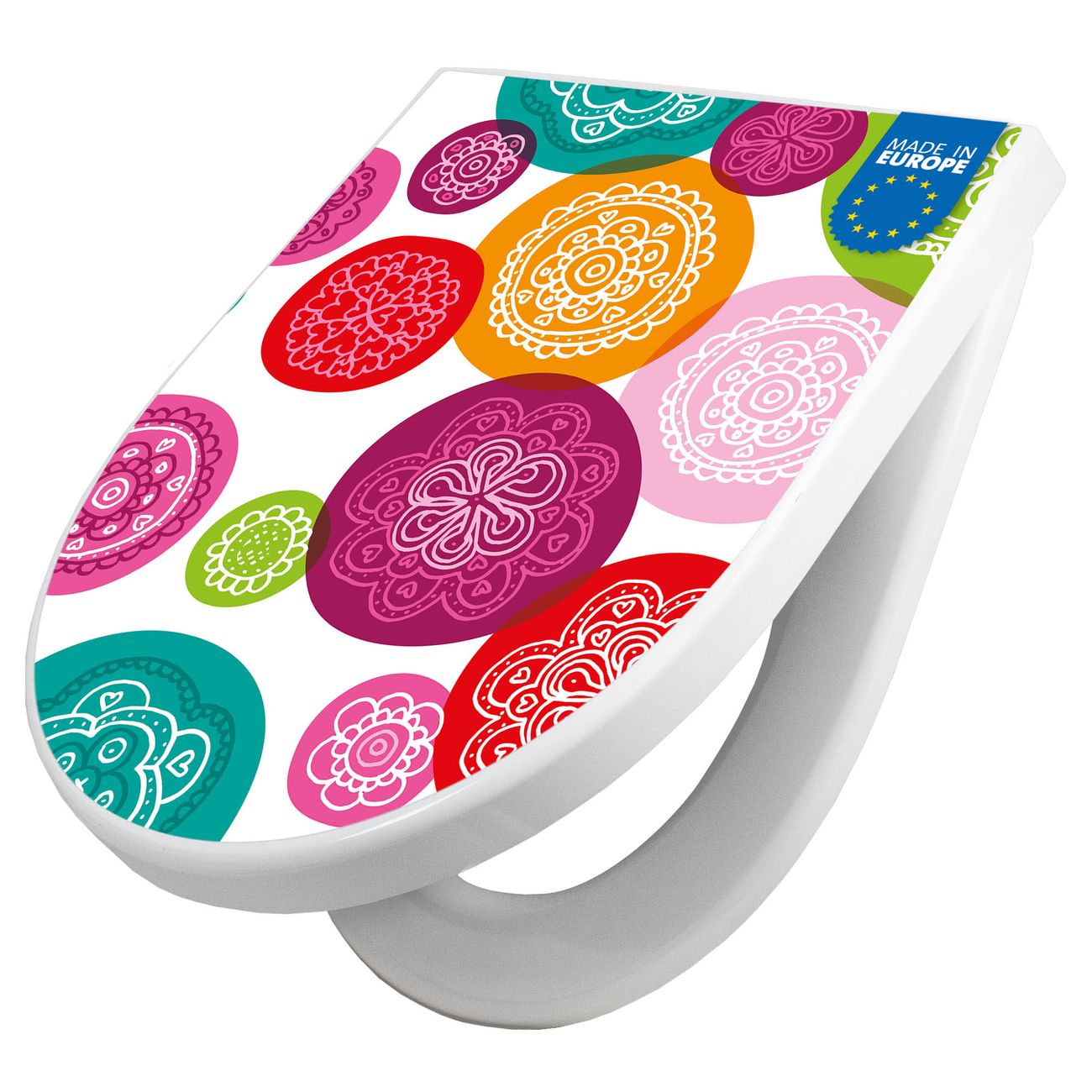 WC Sitz mit Absenkautomatik D Form Motiv Naive Blüten