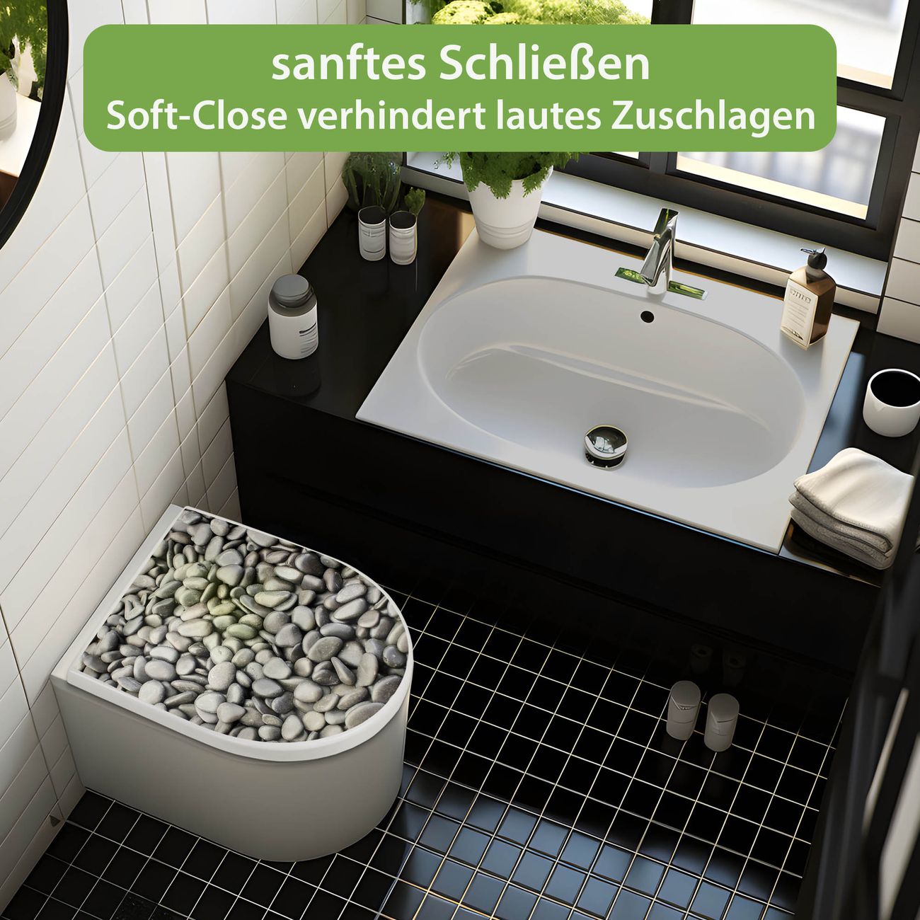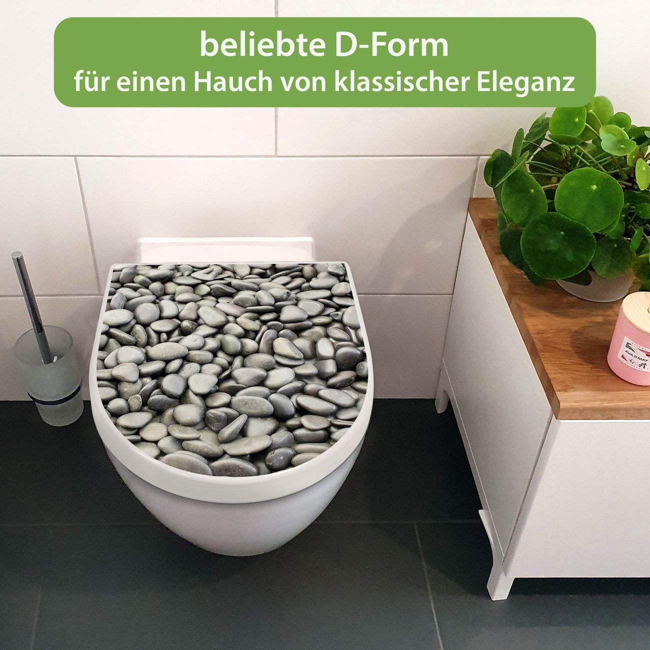 WC Sitz mit Absenkautomatik D Form Motiv Nasse Kiesel