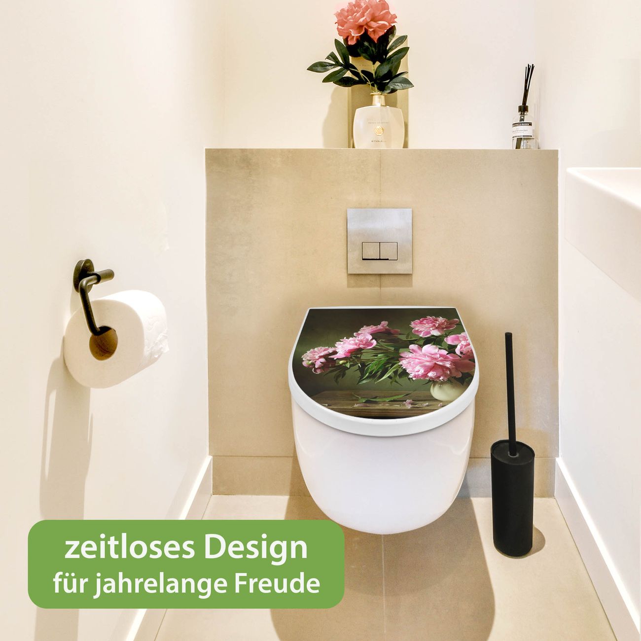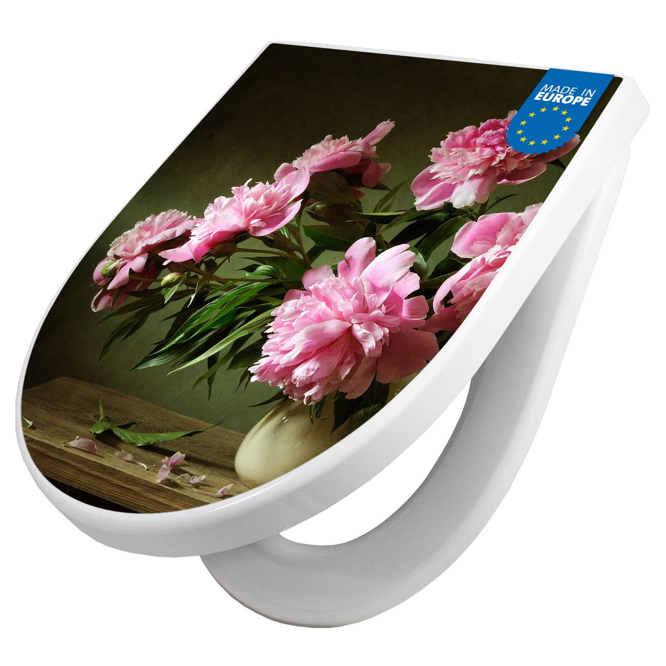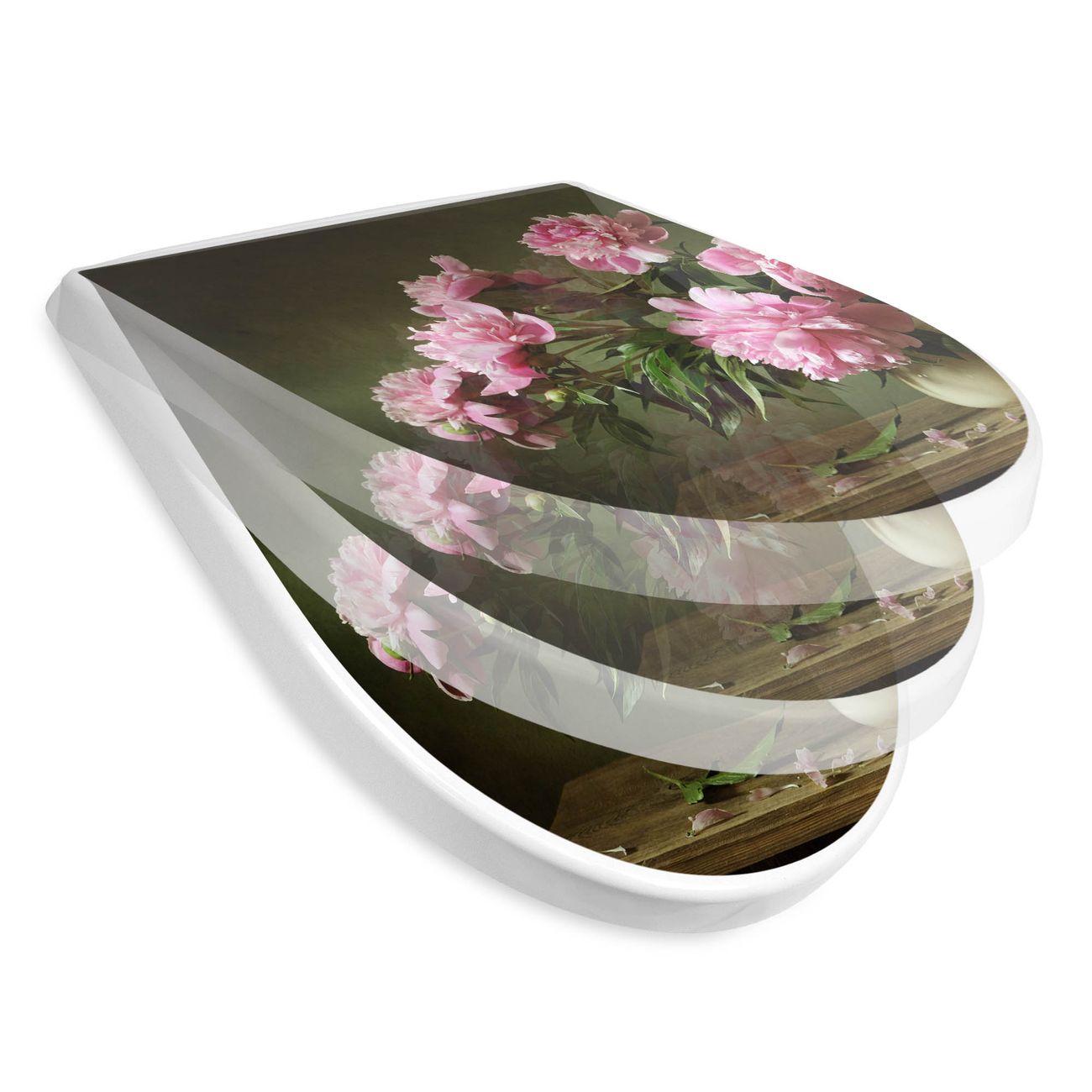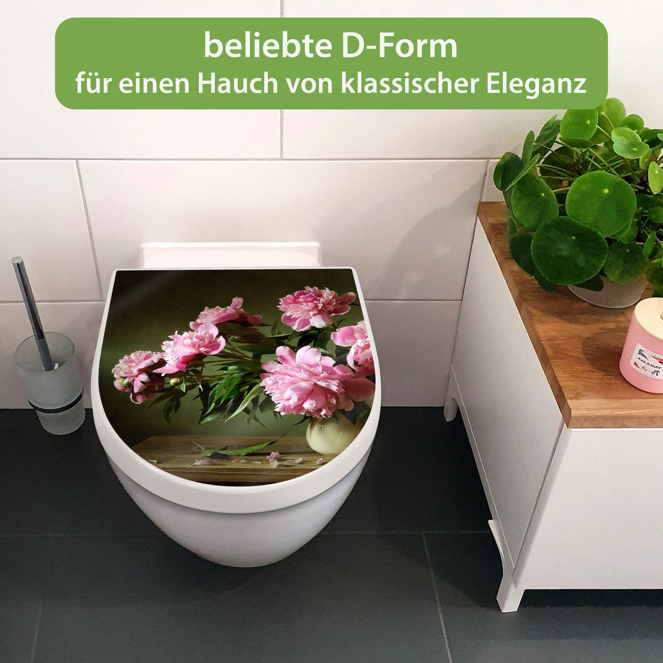 WC Sitz mit Absenkautomatik D Form Motiv Pinke Pfingstrosen
