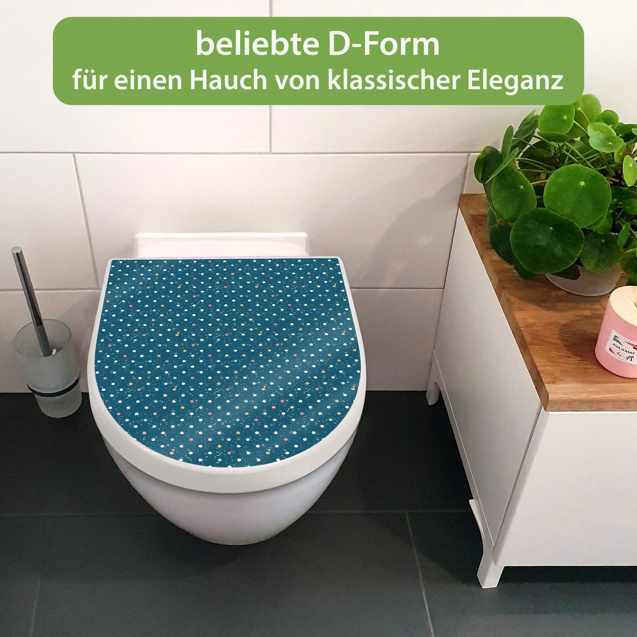 WC Sitz mit Absenkautomatik D Form Motiv Punkte auf Blau