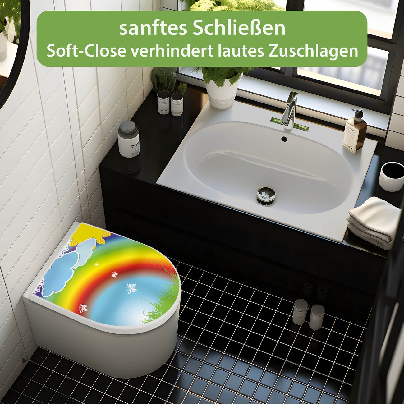 WC Sitz mit Absenkautomatik D Form Motiv Regenbogen