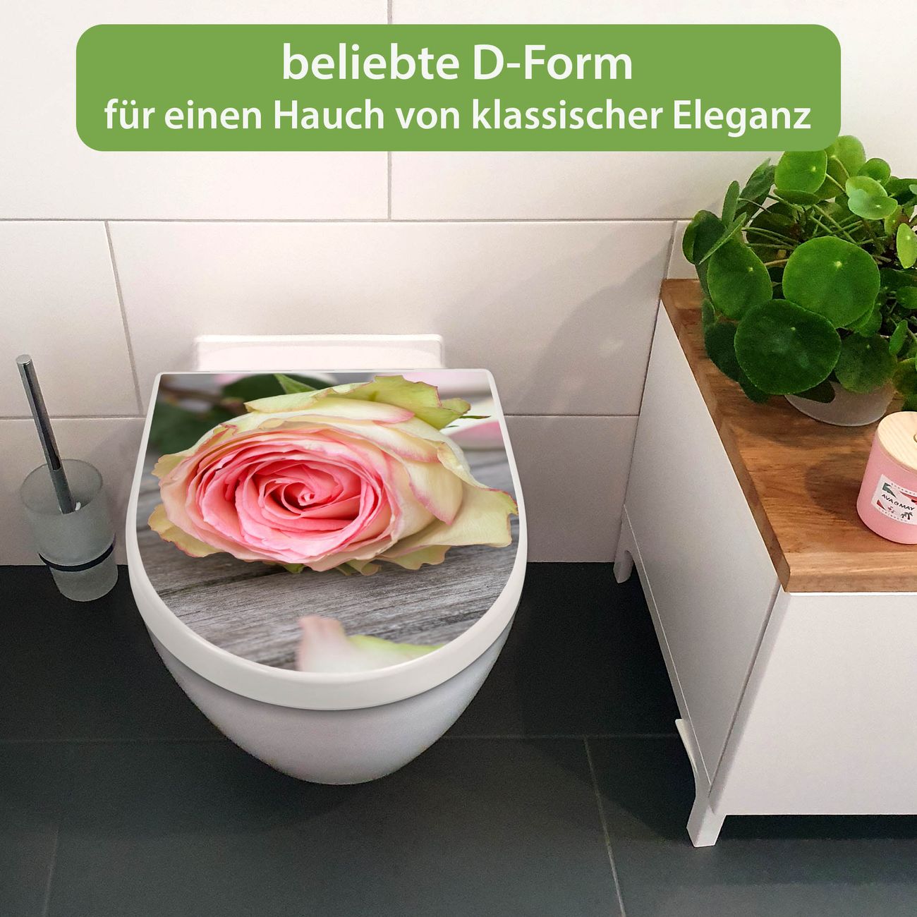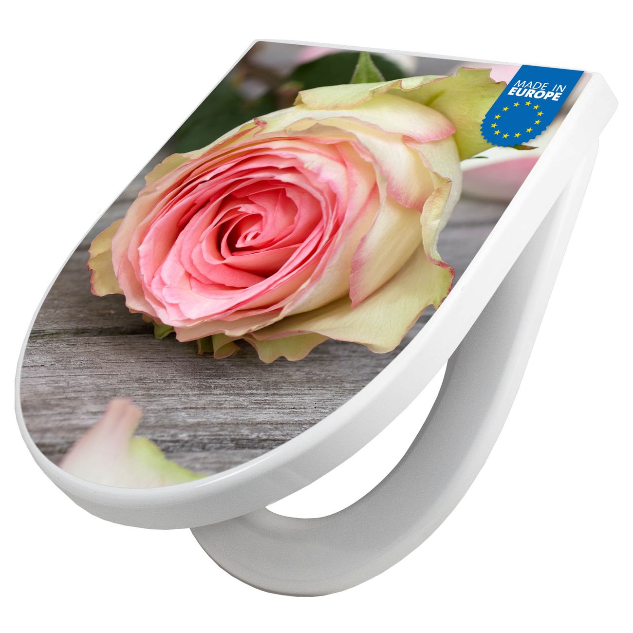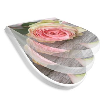 WC Sitz mit Absenkautomatik D Form Motiv Rosa Rose