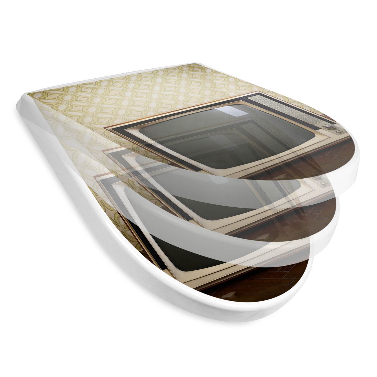 WC Sitz mit Absenkautomatik D Form Motiv Schwarzweiß TV