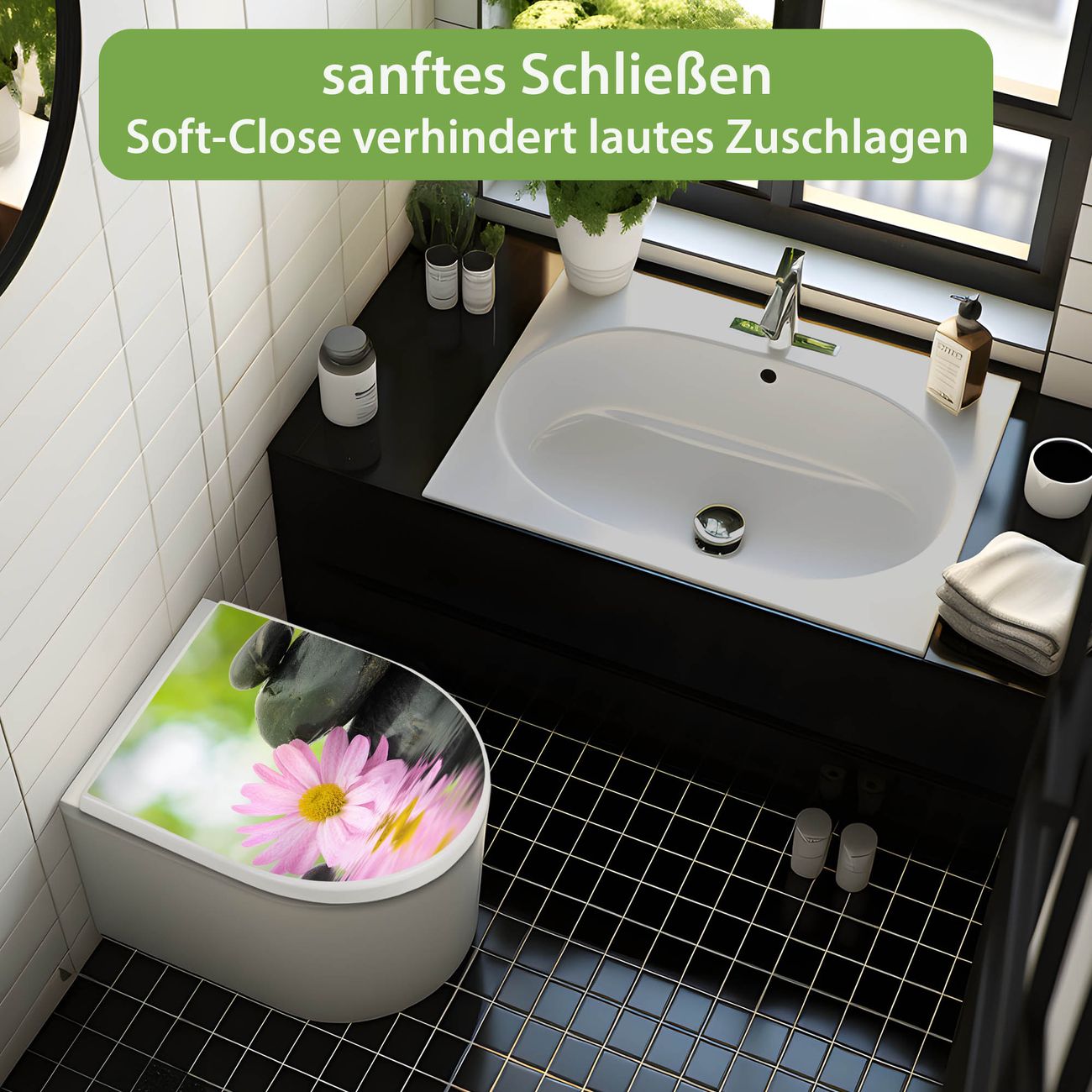 WC Sitz mit Absenkautomatik D Form Motiv Steine & Relax 2
