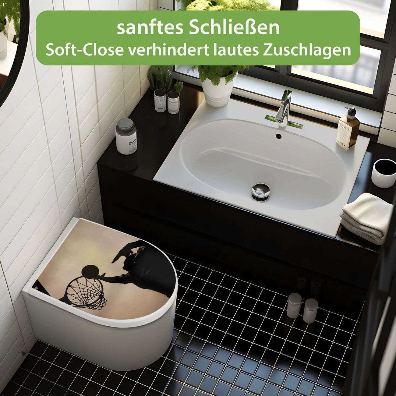WC Sitz mit Absenkautomatik D Form Motiv Tip In